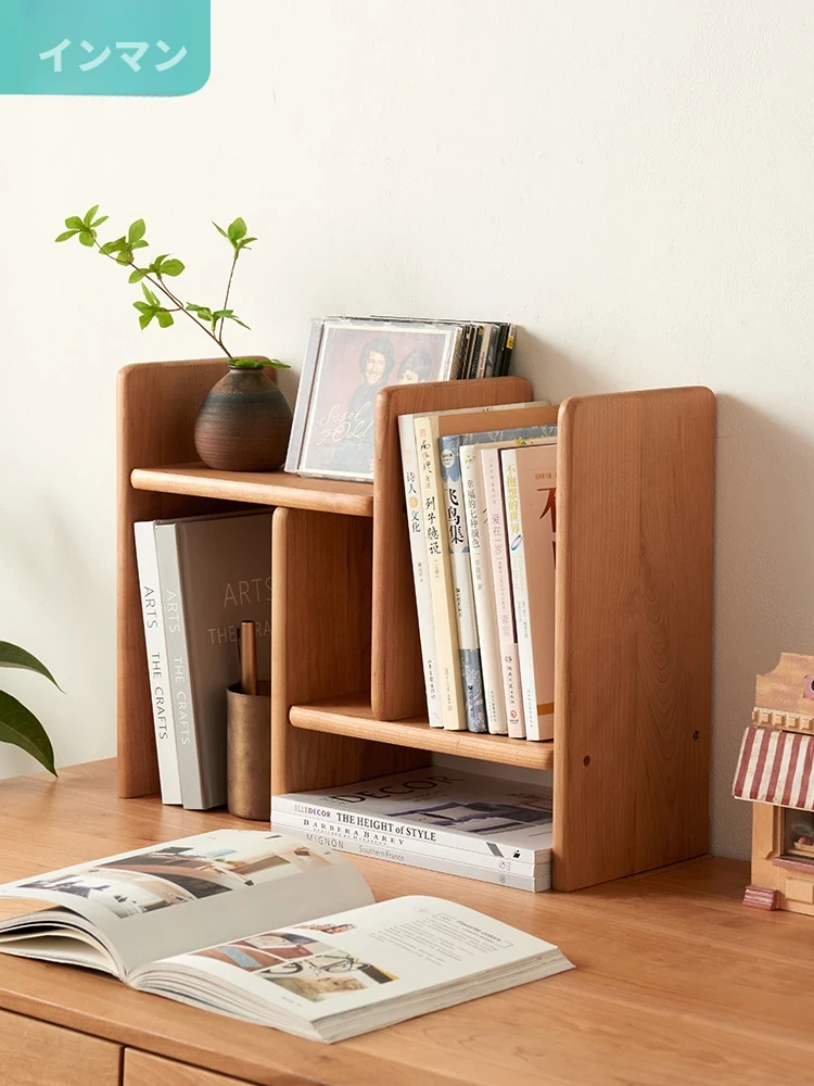天然木材使用の伸縮式デスクトップ書棚!シンプルで洗練されたデザインの小型収納ラック、多層収納でオフィスやリビングに最適。おしゃれな空間を演出し、書類や小物をスッキリ整理整頓!