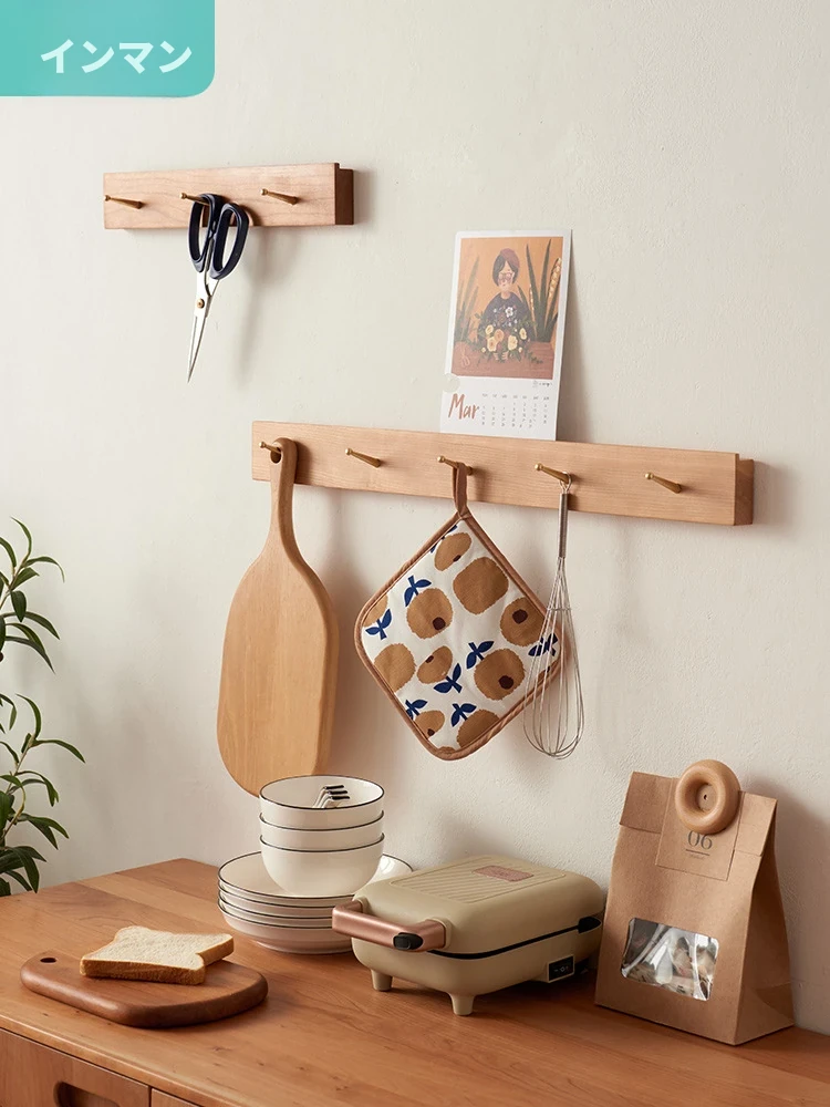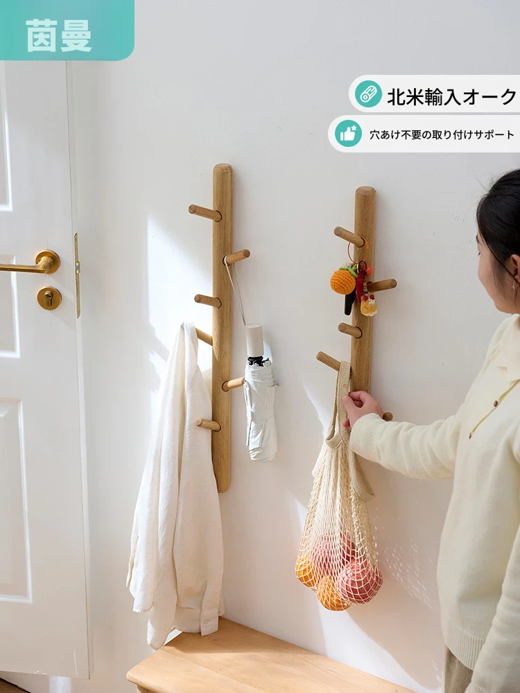 インマン 桜の木製ハンガー 壁掛けコートフック 取り付け不要で便利!寝室や玄関のドア裏にぴったりの衣類掛け、一列のデザインでおしゃれに収納。