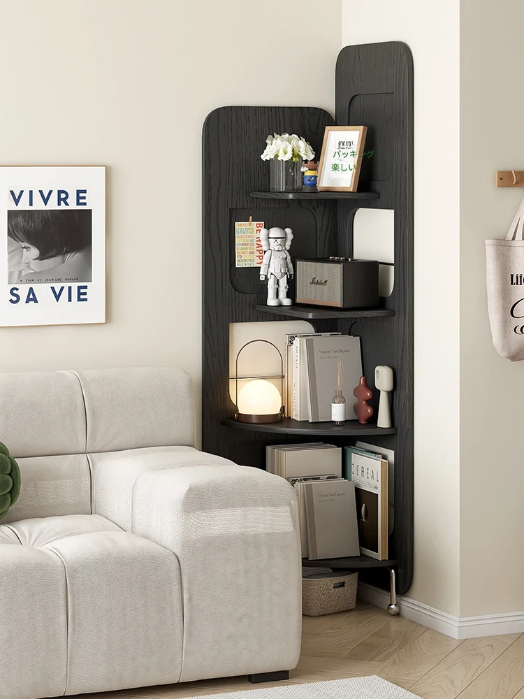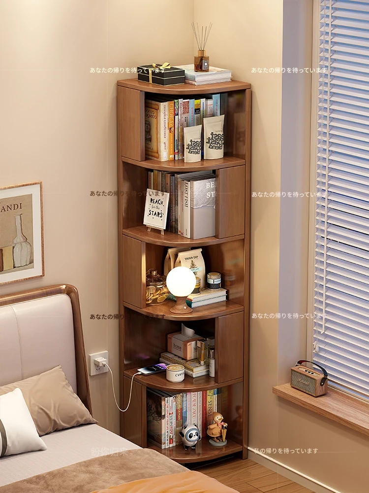 無垢材のリビング用簡易キッズ本棚・コーナーキャビネット一体型!壁にぴったりフィットする角棚、学生も使えるスタイリッシュなフロア収納!お部屋をスッキリさせ、楽しい読書時間を提供します!