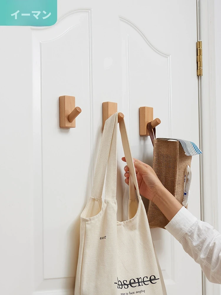 インマン 耐久性抜群のフック!穴あけ不要の木製コートハンガー、玄関にぴったりの強力粘着フックでバッグや衣類をスッキリ収納。創造的なデザインでお部屋をおしゃれに演出!