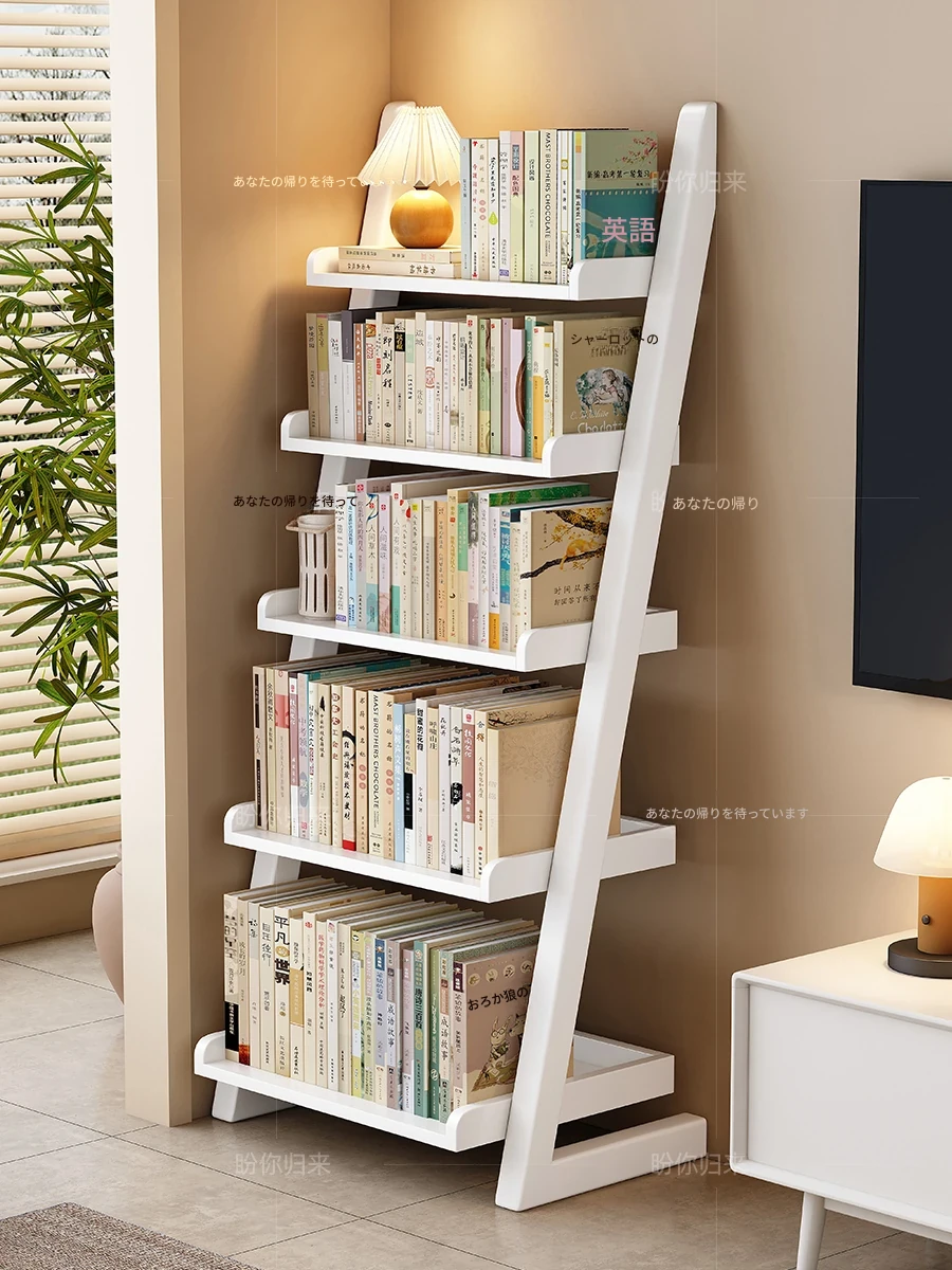 天然木製のフロア書棚 - 多層収納・シンプルデザイン!家族の寝室や学生の勉強部屋に最適。リビングにぴったりの三角形の壁掛け収納ラックで、すっきりとお部屋を演出します。