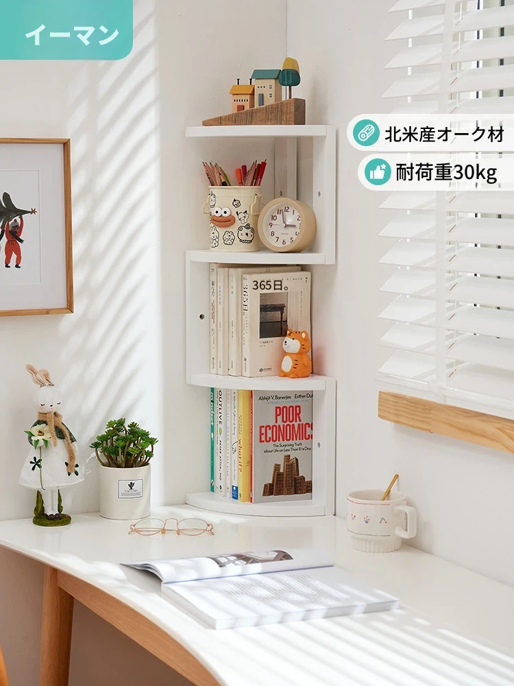 インマンの無垢材オフィスデスク90度コーナー収納スタンド、和風オーク材の壁面三角ラック、寝室やワークスペースにぴったりのスタイリッシュな角棚!おしゃれで機能的な収納を実現します。