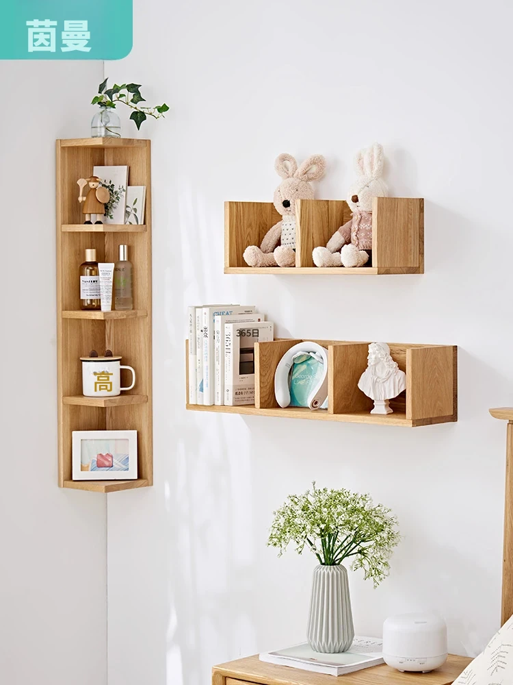 インマン 無垢材の壁角収納棚 三角形の本棚 懸空のシェルフ 壁掛けのオーク製コーナーラックでお部屋をスタイリッシュに演出!収納力抜群で空間を有効活用!