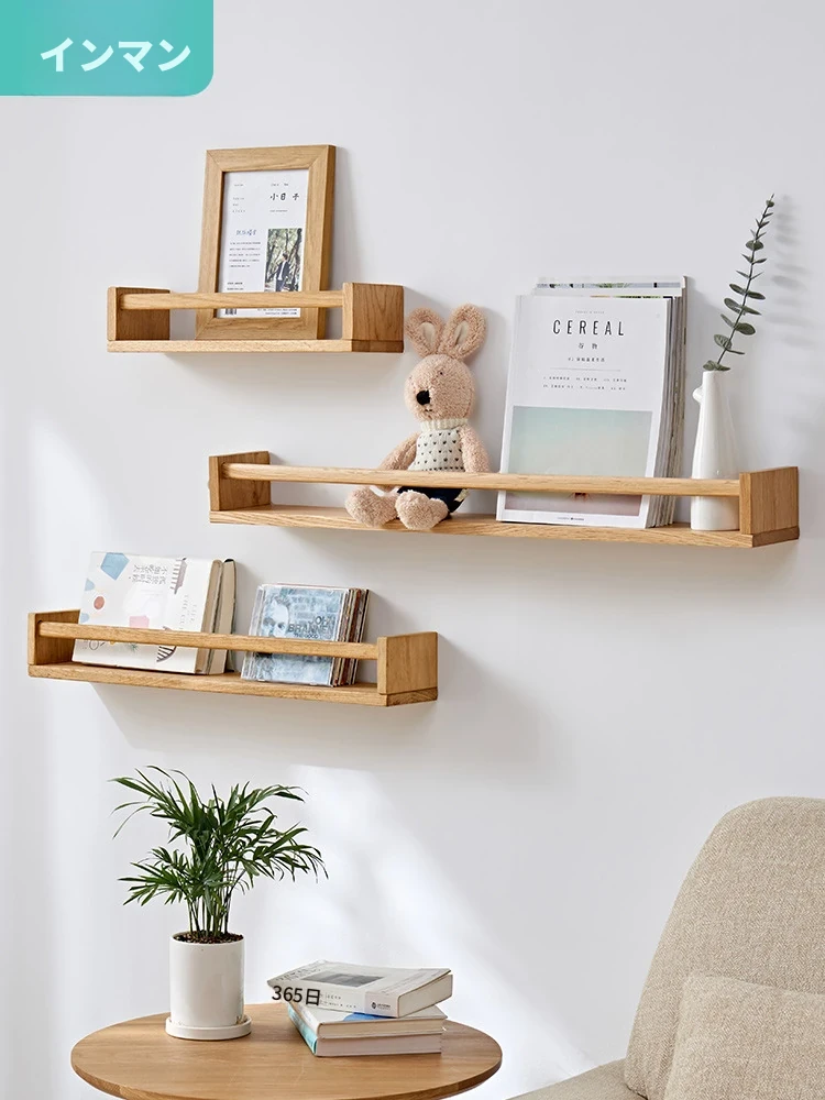 インマンオーク材の本格的なウッドウォールシェルフ|雑誌・書類・絵本収納に最適!おしゃれで実用的な収納ラックで、部屋をスッキリ整理整頓。あなたのインテリアにぴったりなアイテムです!