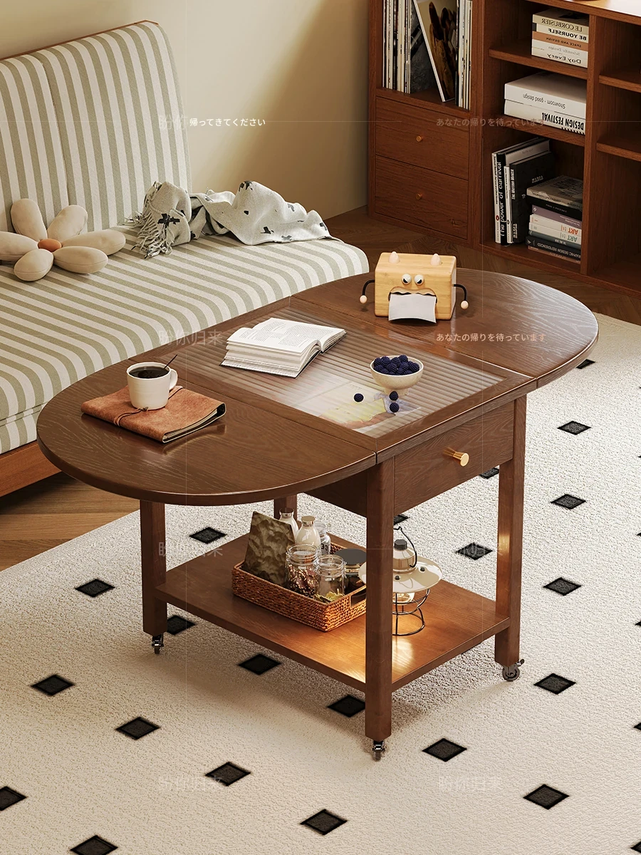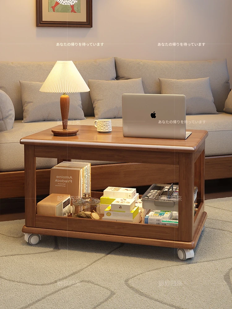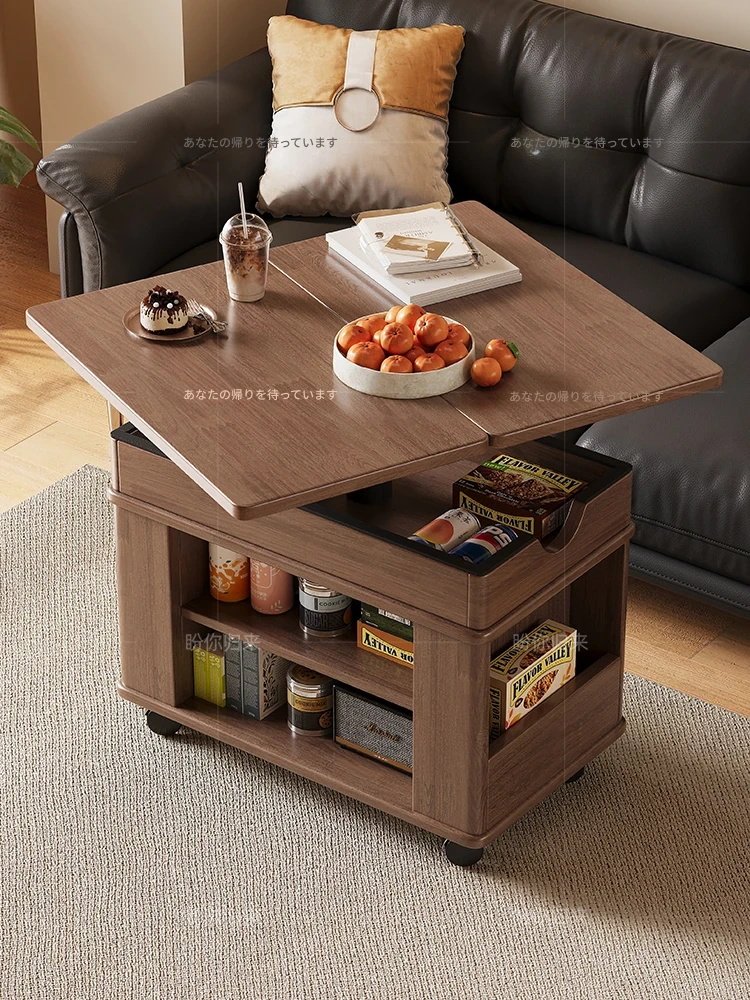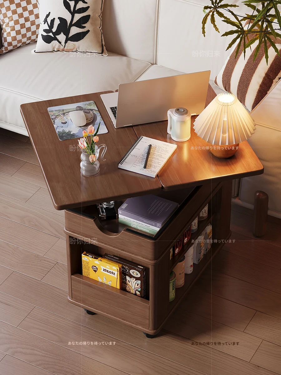 昇降式折りたたみ移動小テーブル - 実木製の多機能ティーテーブル!小型住宅に最適なリビングとダイニング両用のサイドテーブル。空間を有効活用し、スタイリッシュな生活を実現!