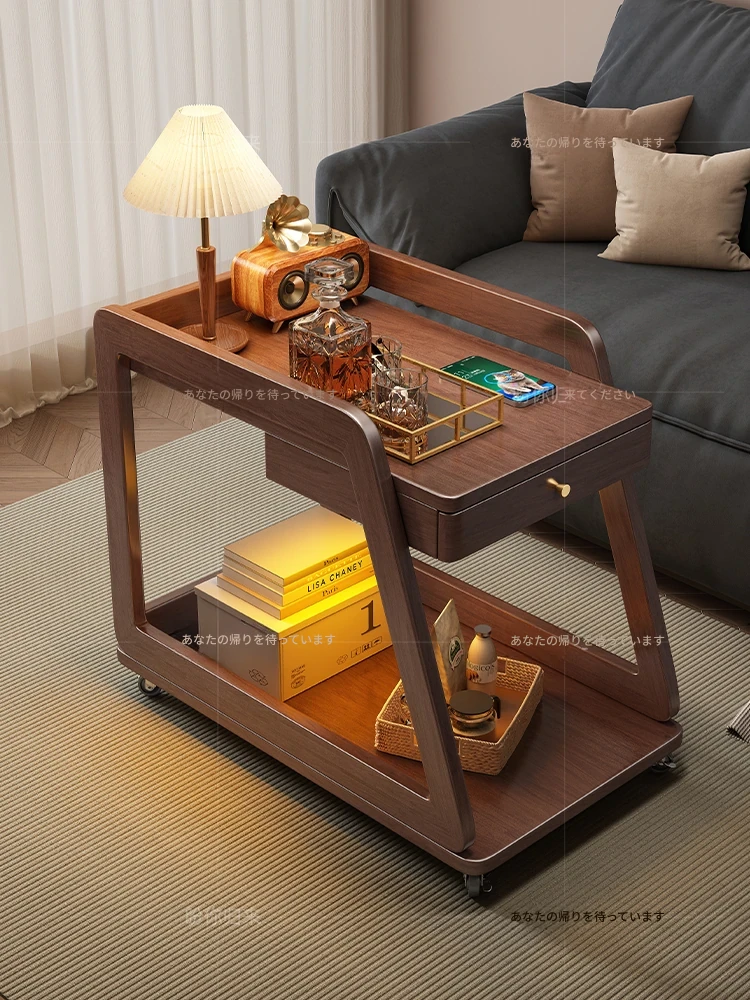 多機能・移動可能な天然木製ソファサイドテーブル|家庭用・寝室・リビングに最適な小型収納キャビネット|おしゃれで便利なサイドテーブル