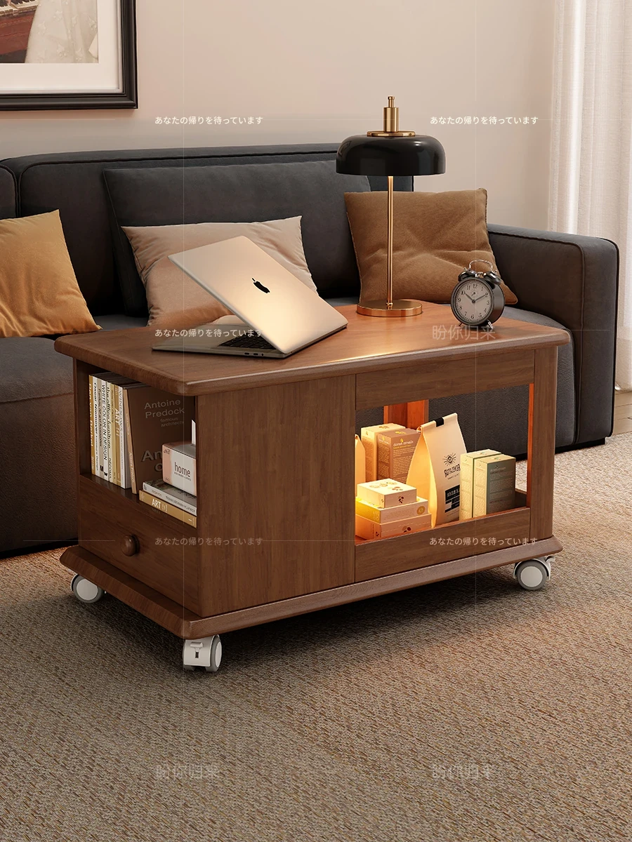 移動可能な無垢材製サイドテーブル|リビングにぴったりなコンパクトなティーテーブル|収納力抜群の簡易キャビネット|おしゃれなソファサイドラック