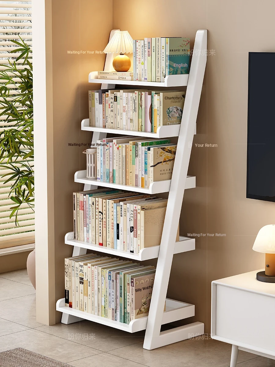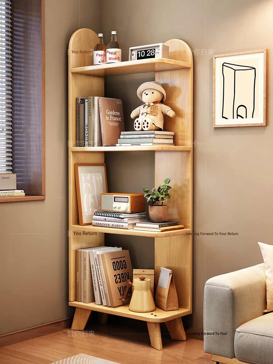 Nordic Solid Wood Corner Bookshelf - Stylish Floor Storage Rack for Living Room, Perfect Corner Cabinet for Wall Space, Simple Bedside Bookcase for Easy Organization