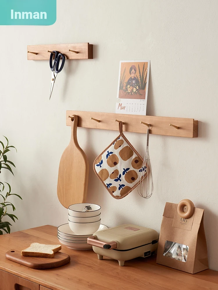 Inman No-Drill Hooks: Stylish Wooden Wall-Mounted Coat Rack for Entryway - Strong Adhesive Hooks for Bags and Clothes, Perfect for Organizing Your Space!