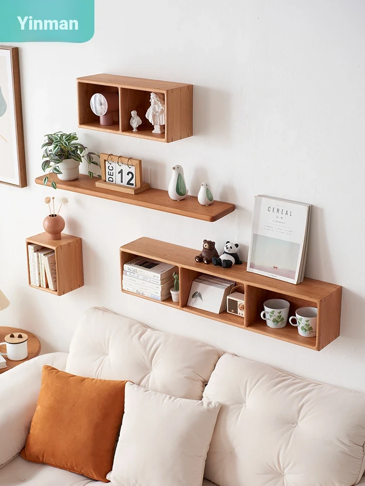 Wall-Mounted Solid Wood Bookshelf - Stylish and Functional Storage Rack for Bedroom and Living Room, Perfect for TV Wall Décor and Multi-Compartment Organization