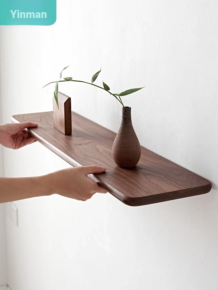Inman Solid Wood Wall-Mounted Shelf - Stylish One-Board Design for Living Room & Bedroom, Walnut Finish, Perfect for Organizing and Decorating Your Space