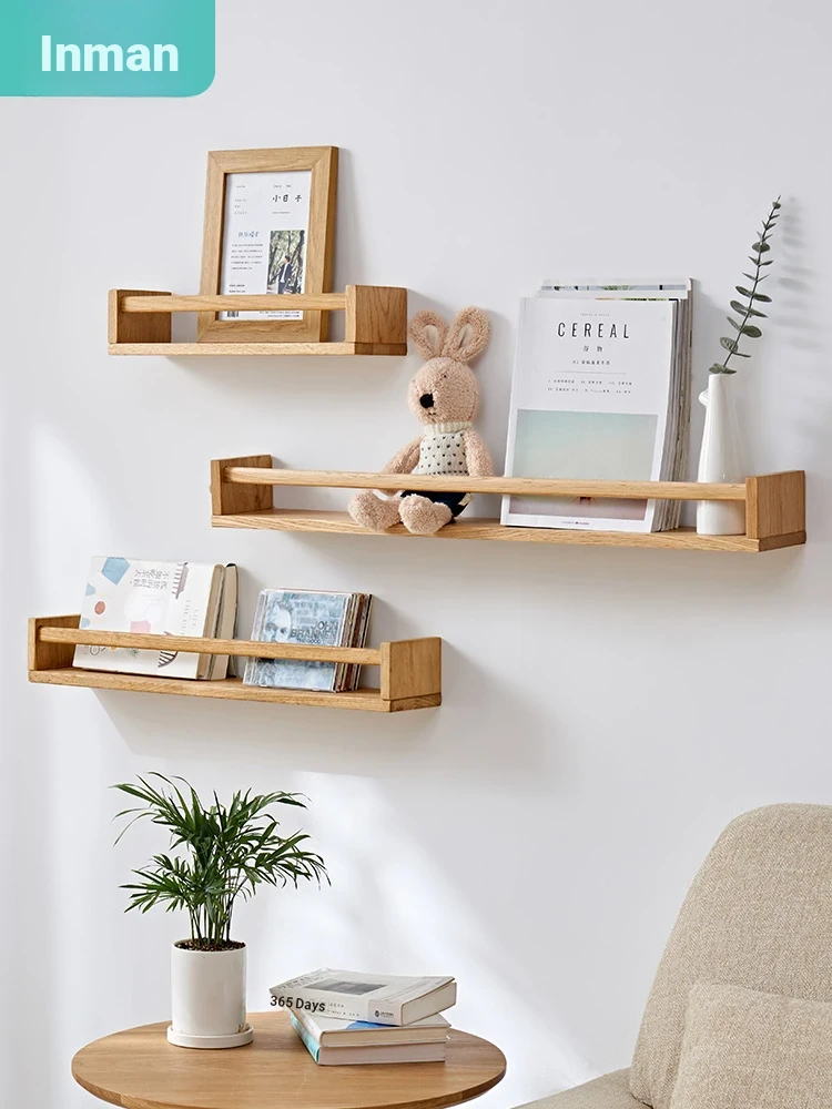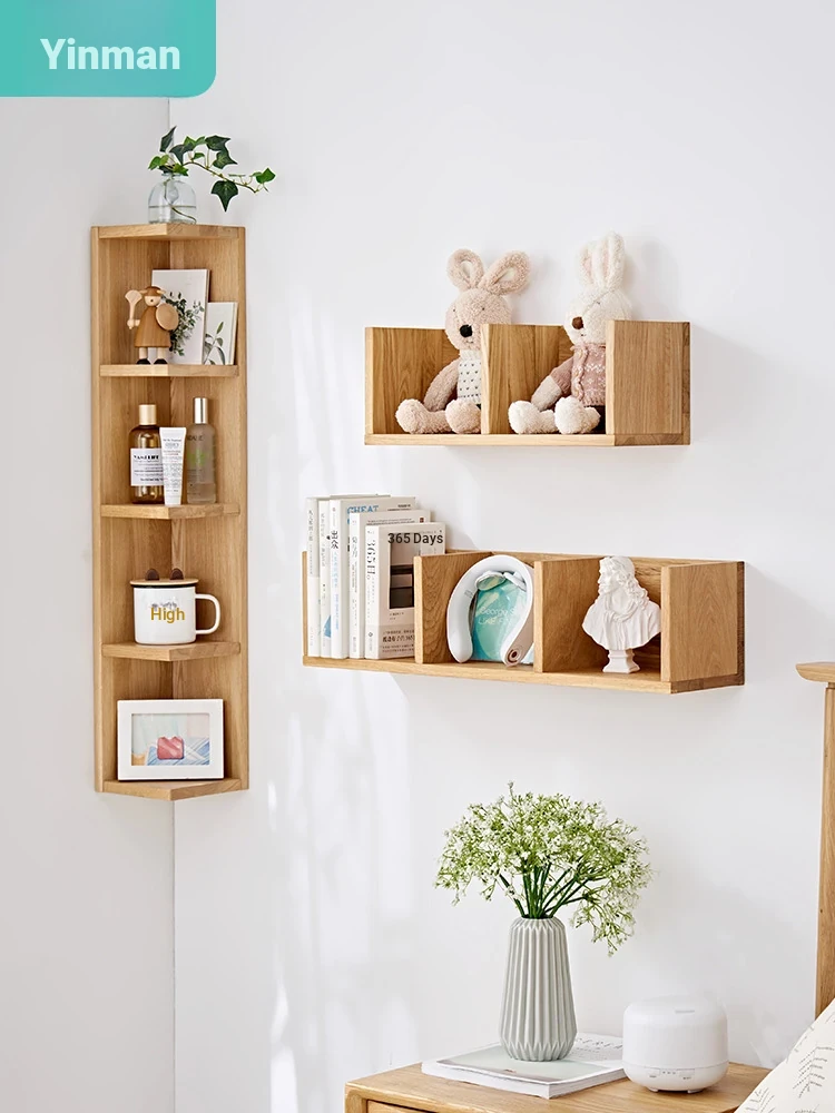 Solid Wood Floor Bookshelf - Stylish Wall-Mounted Storage Unit for Home Use, Perfect for Bedrooms and Living Rooms, Ideal Bedside Bookcase and Modern Display Cabinet.