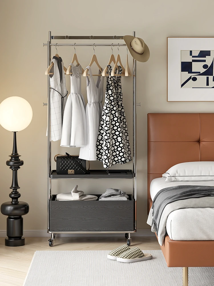 Zongyun Wooden Freestanding Coat Rack - Stylish Bedroom Clothes Hanger and Bedside Storage Solution for Organized Living