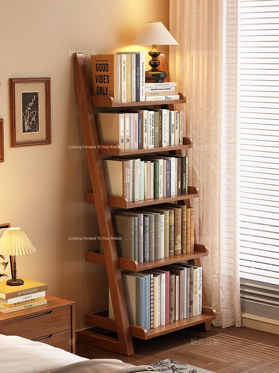 Solid Wood Bookshelf - Floor-standing Storage Rack for Home, Student Small Bookcase, Corner Organizer for Living Room, Bedroom Corner Storage Cabinet