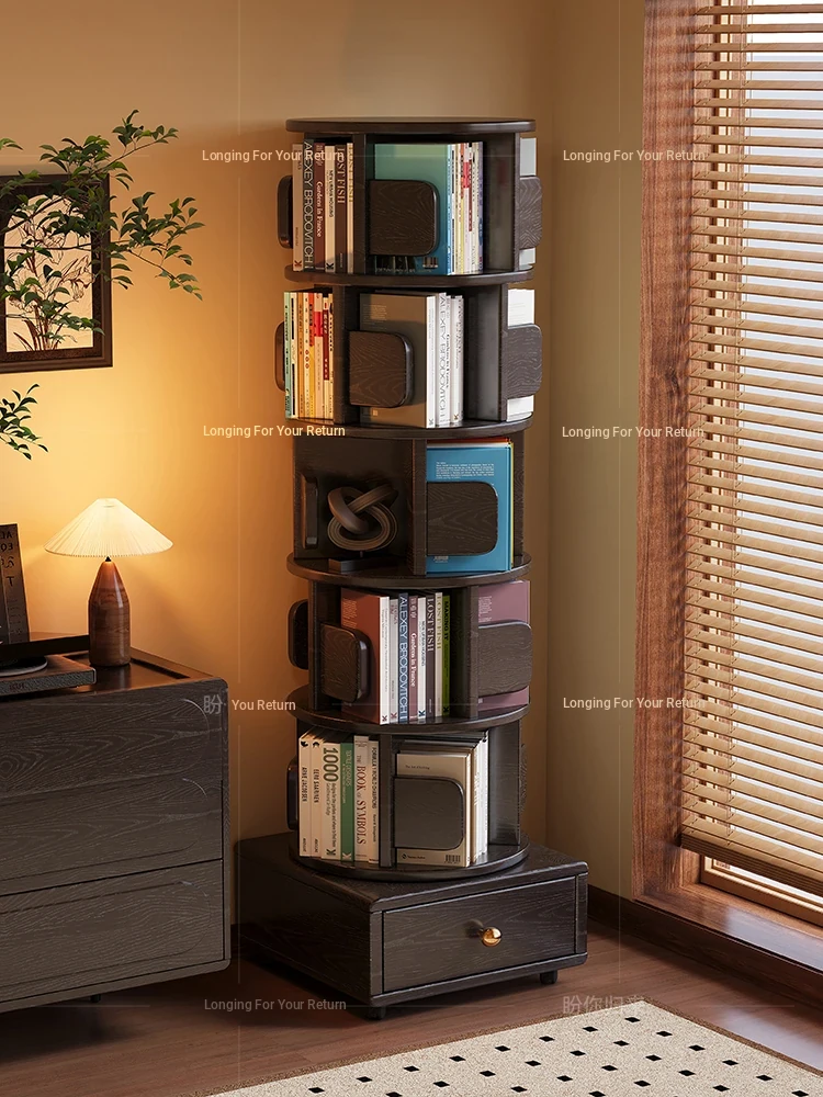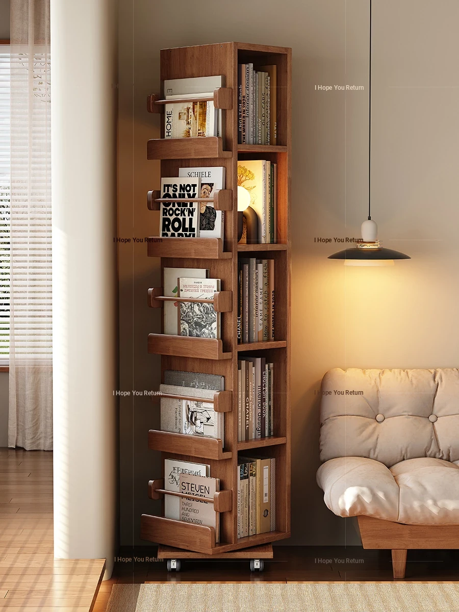 Rotating Solid Wood Bookshelf - 360-Degree Movable Storage Rack for Home, Ideal for Students' Book Organization, Perfect Wall-Mounted Cabinet for Bedrooms