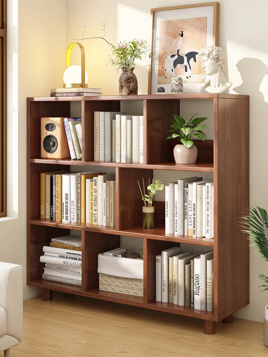 Stylish Solid Wood Bookshelf - Space-Saving Floor Storage Rack for Small Living Rooms, Movable Low Book Cabinet, Perfect for Home and Bedroom Organization