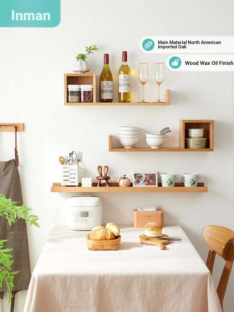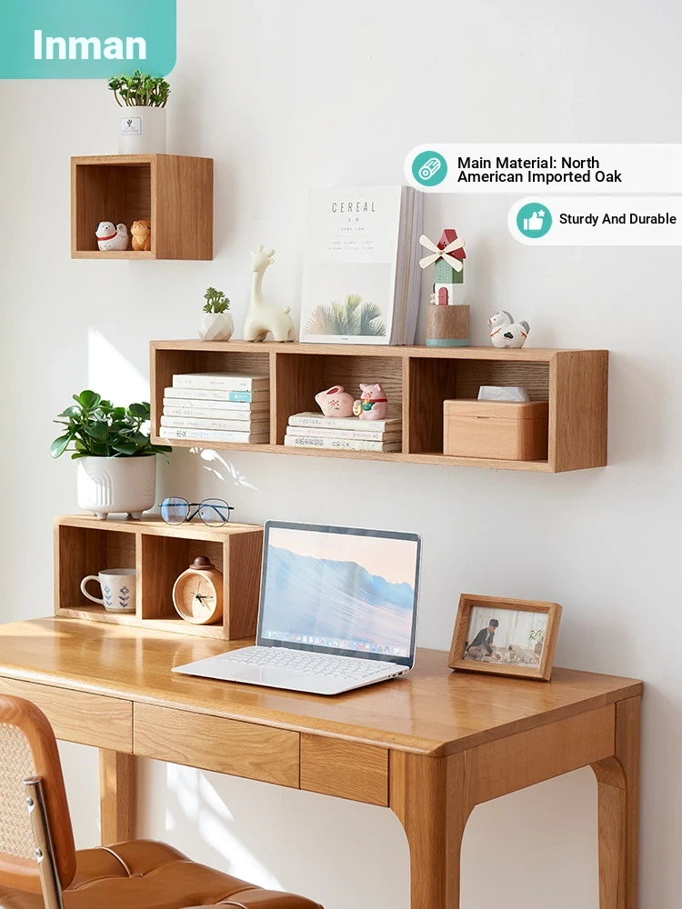 Inman Solid Wood Wall-Mounted Bookshelf - Modern Minimalist Creative Grid Design, Japanese Oak Wall Storage Rack for Stylish Home Décor