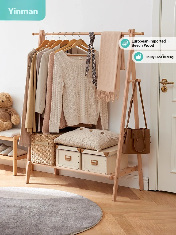 Inman Foldable Free-Standing Clothes Rack - Simple Solid Wood Wardrobe for Bedroom, Ideal for Hanging Clothes and Hats, Space-Saving and Stylish Design