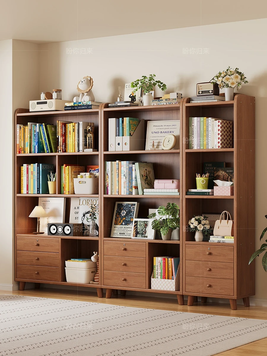 Solid Wood Bookshelf - Floor Standing Multi-Layer Storage Cabinet for Home, Compact Combination Bookcase, Wall-Mounted Book Organizer for Efficient Space Utilization
