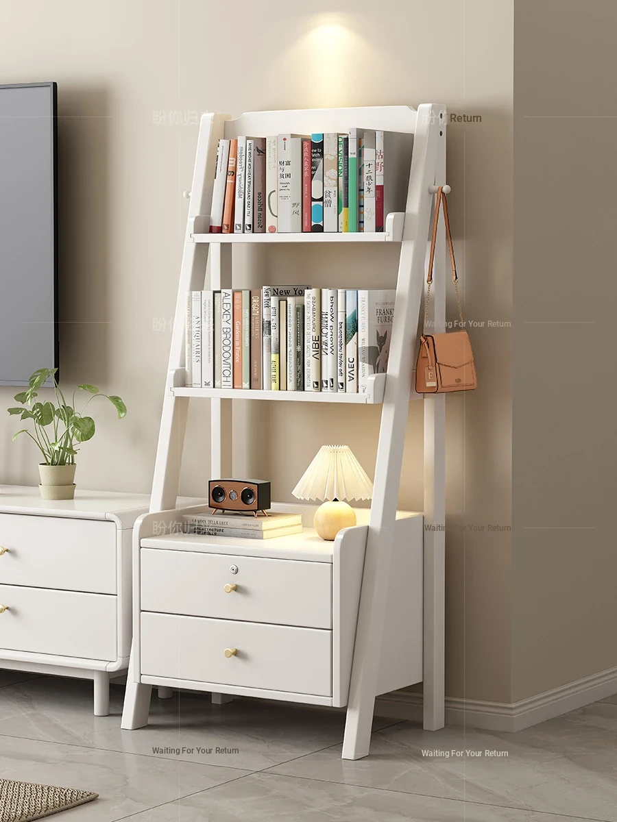 Solid Wood Triangular Multi-Layer Bookshelf - Stylish Ladder Storage Rack for Bedroom and Living Room, Floor Standing Design, Perfect for Organizing and Elevating Your Space with a Chic Bedside Table Addition!