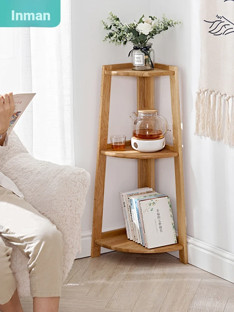 Nordic Solid Wood Corner Bookshelf - Stylish Floor Storage Rack for Living Room, Perfect Corner Cabinet for Wall Storage, Simple Bedside Bookcase for Easy Organization