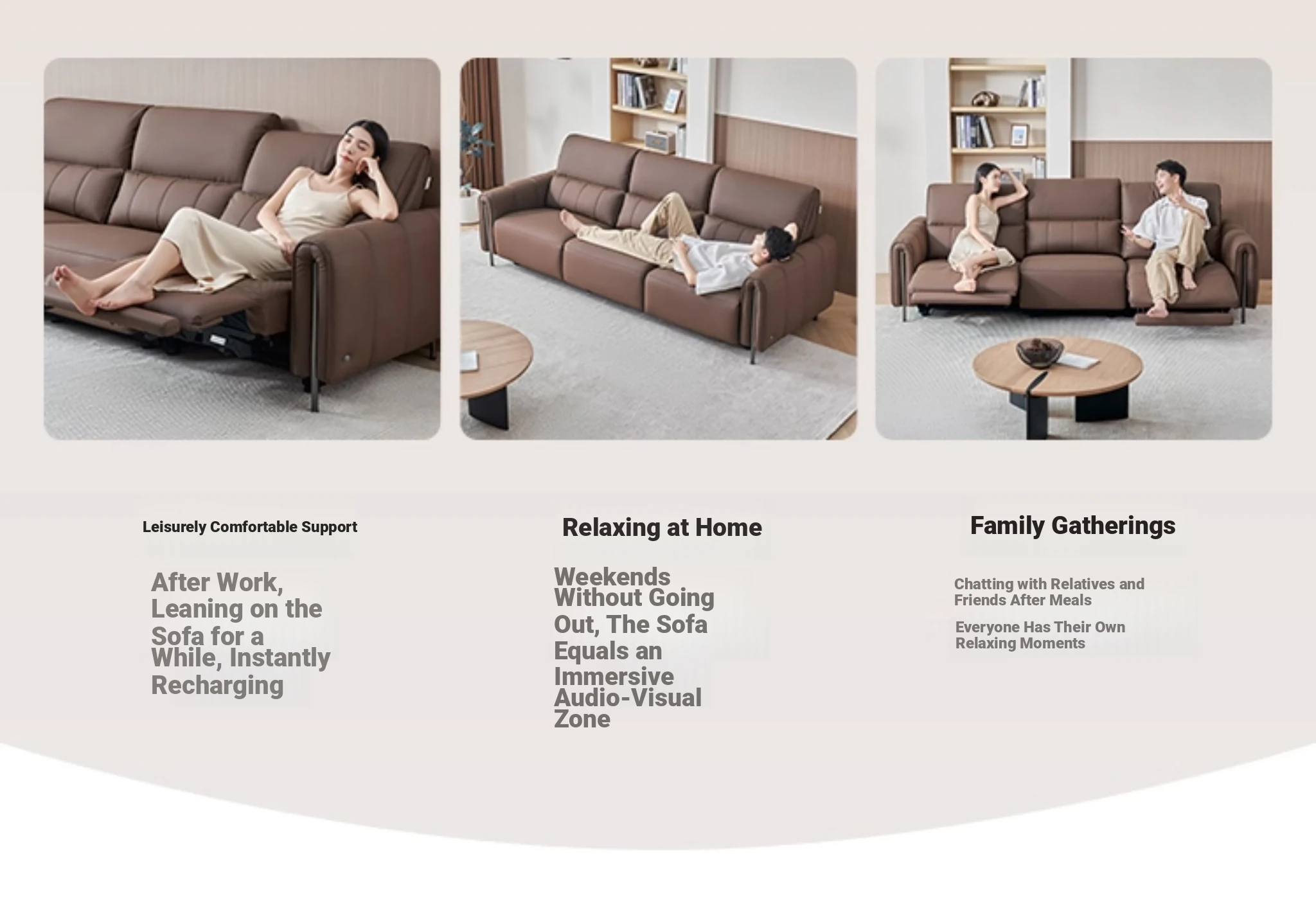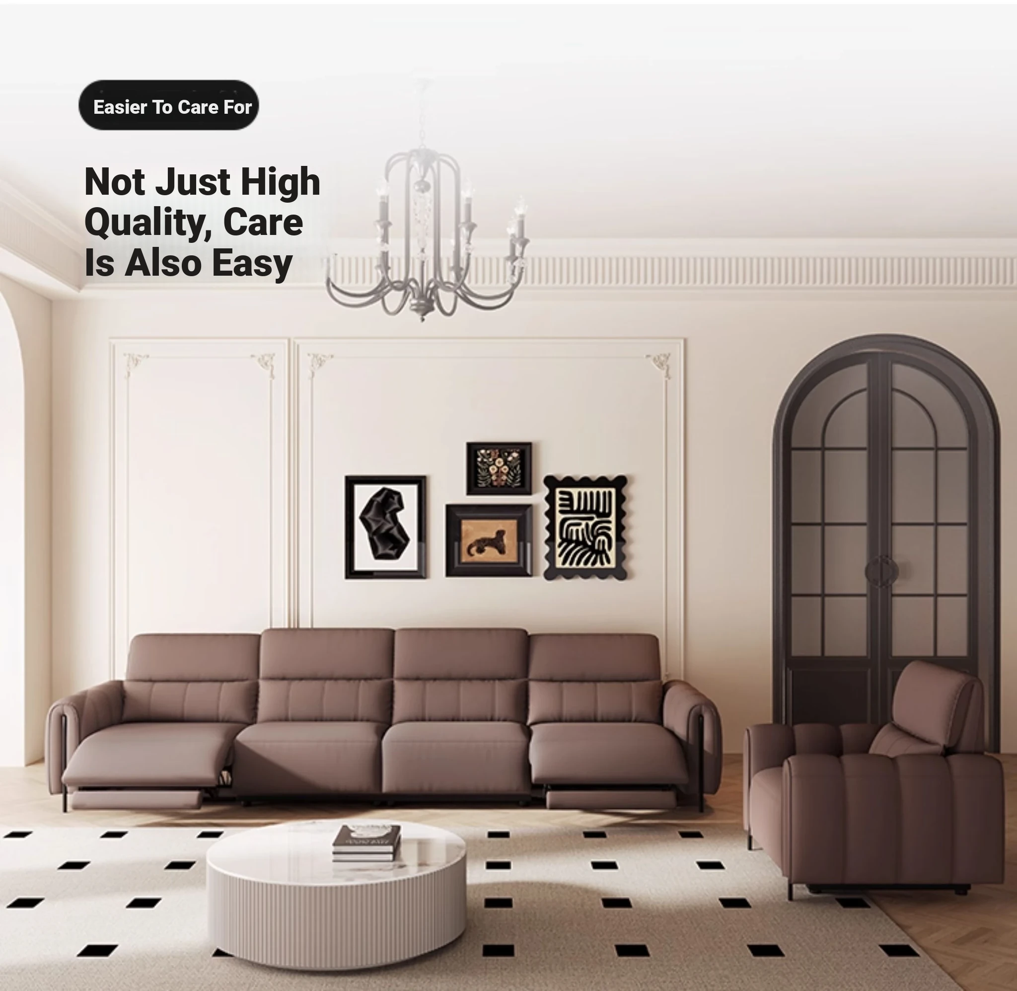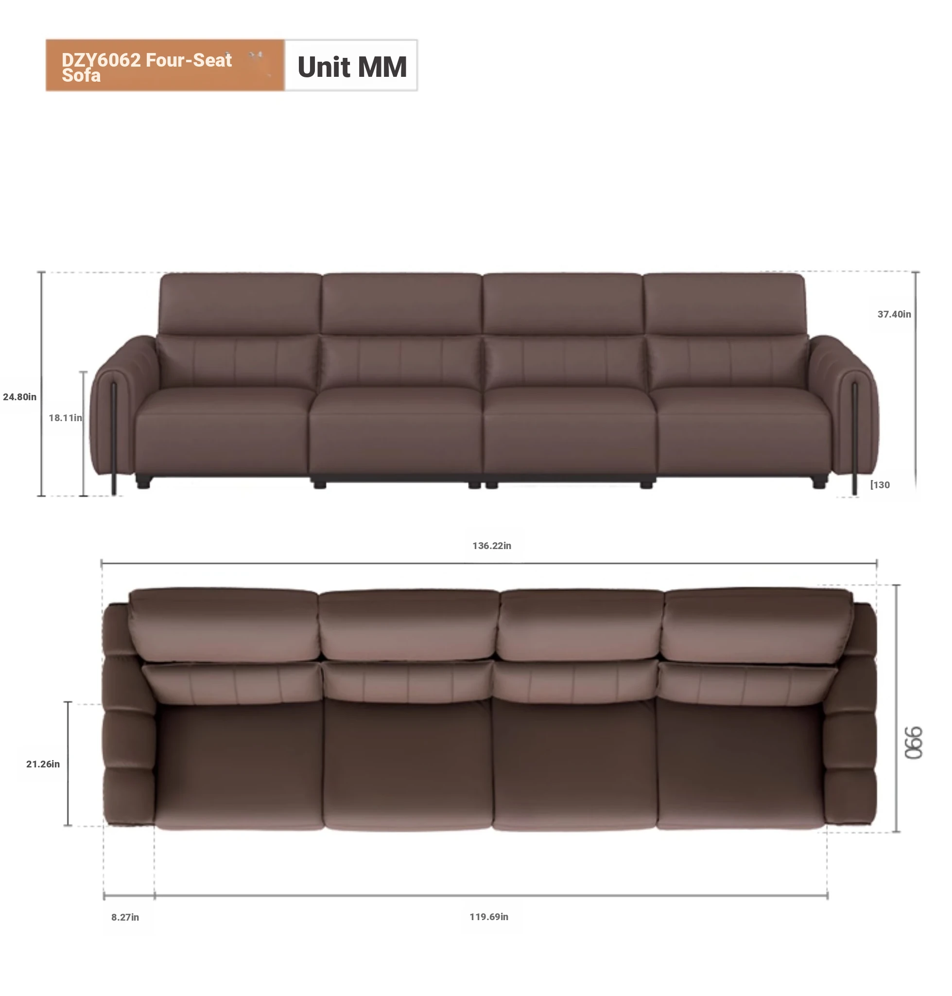 ⑦【Zero Against the Wall】 124.41in Small Four-Seater Double Electric Dark Brown Color