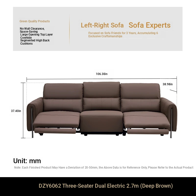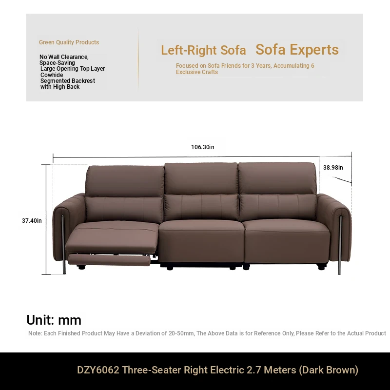 New Leather Electric Recliner Sofa Chair - Smart Functionality for Home Theater and Living Room, Space-Saving Design, Model 6062