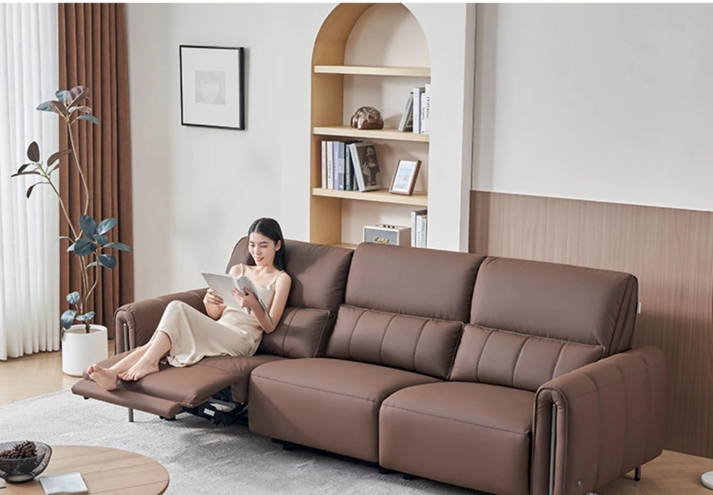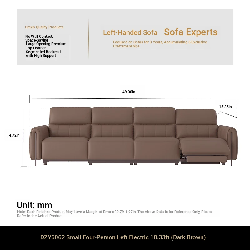 ⑤【Zero Against the Wall】 124.41in Small Four-Seater Left Single Electric Dark Brown Color