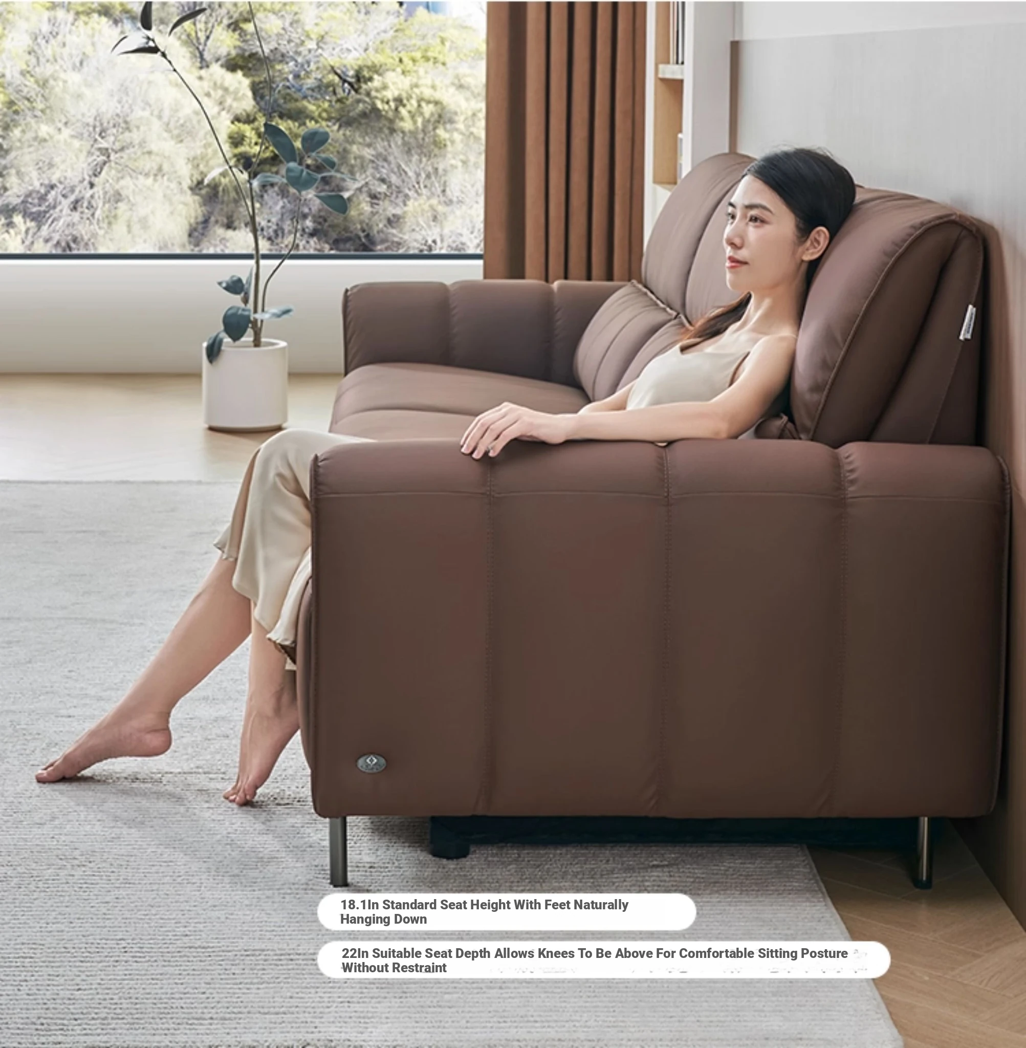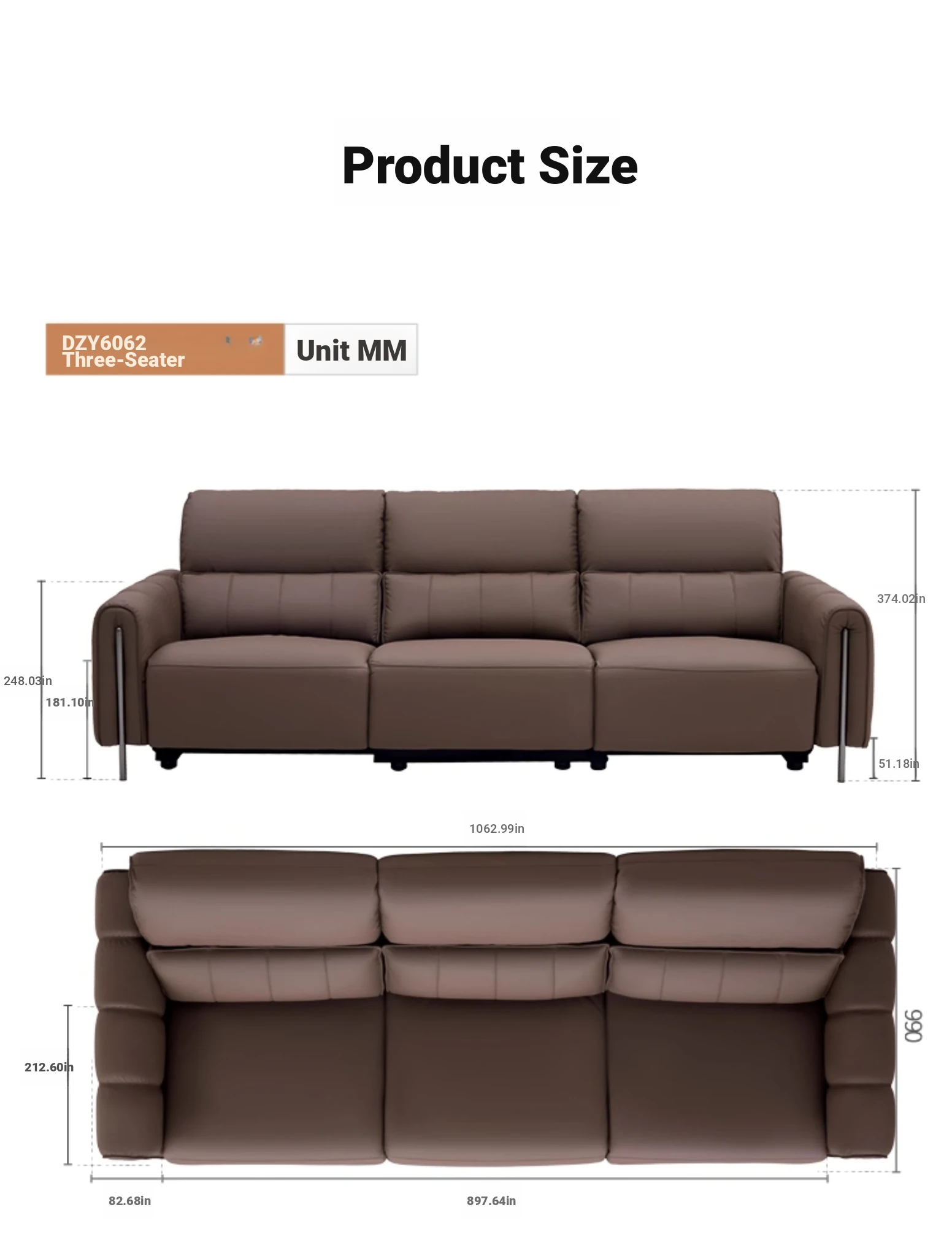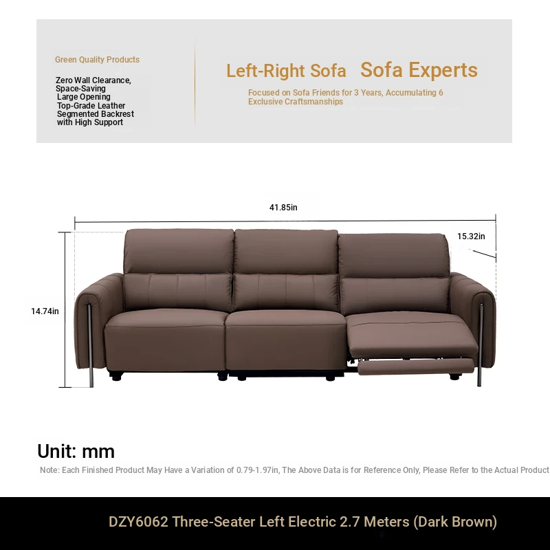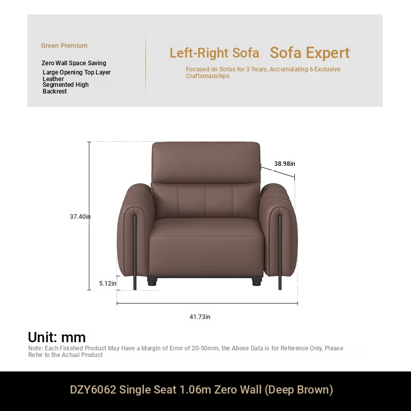 ①【Zero Against the Wall】 41.73in Single Seat Dark Brown Color