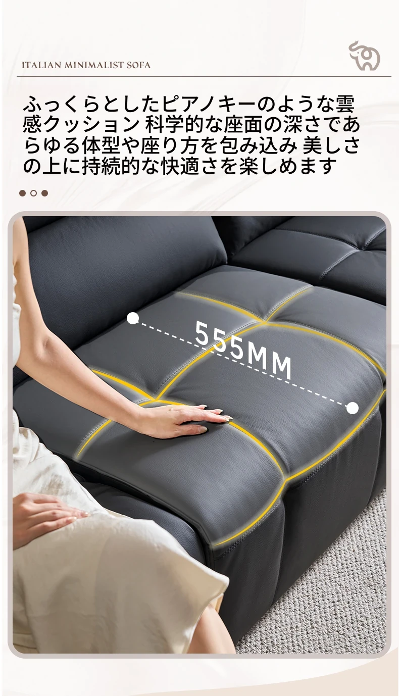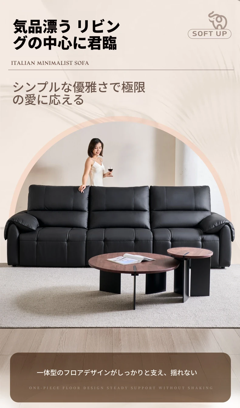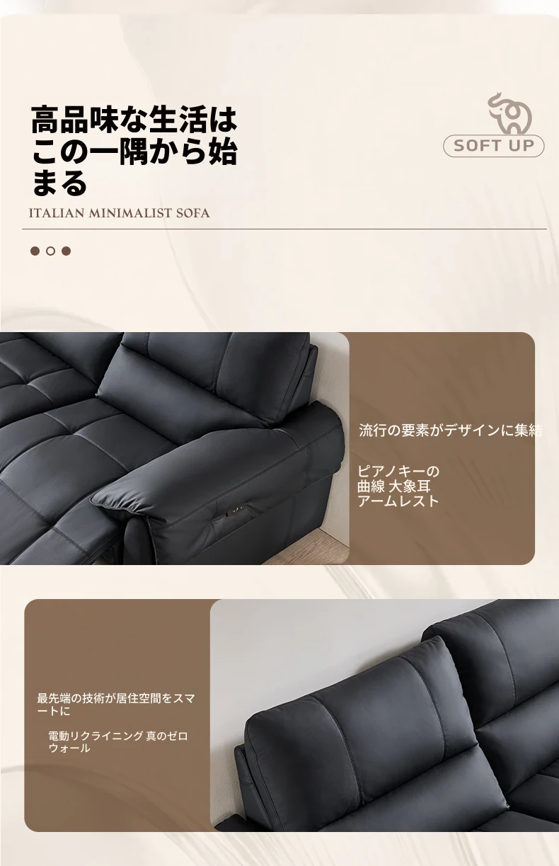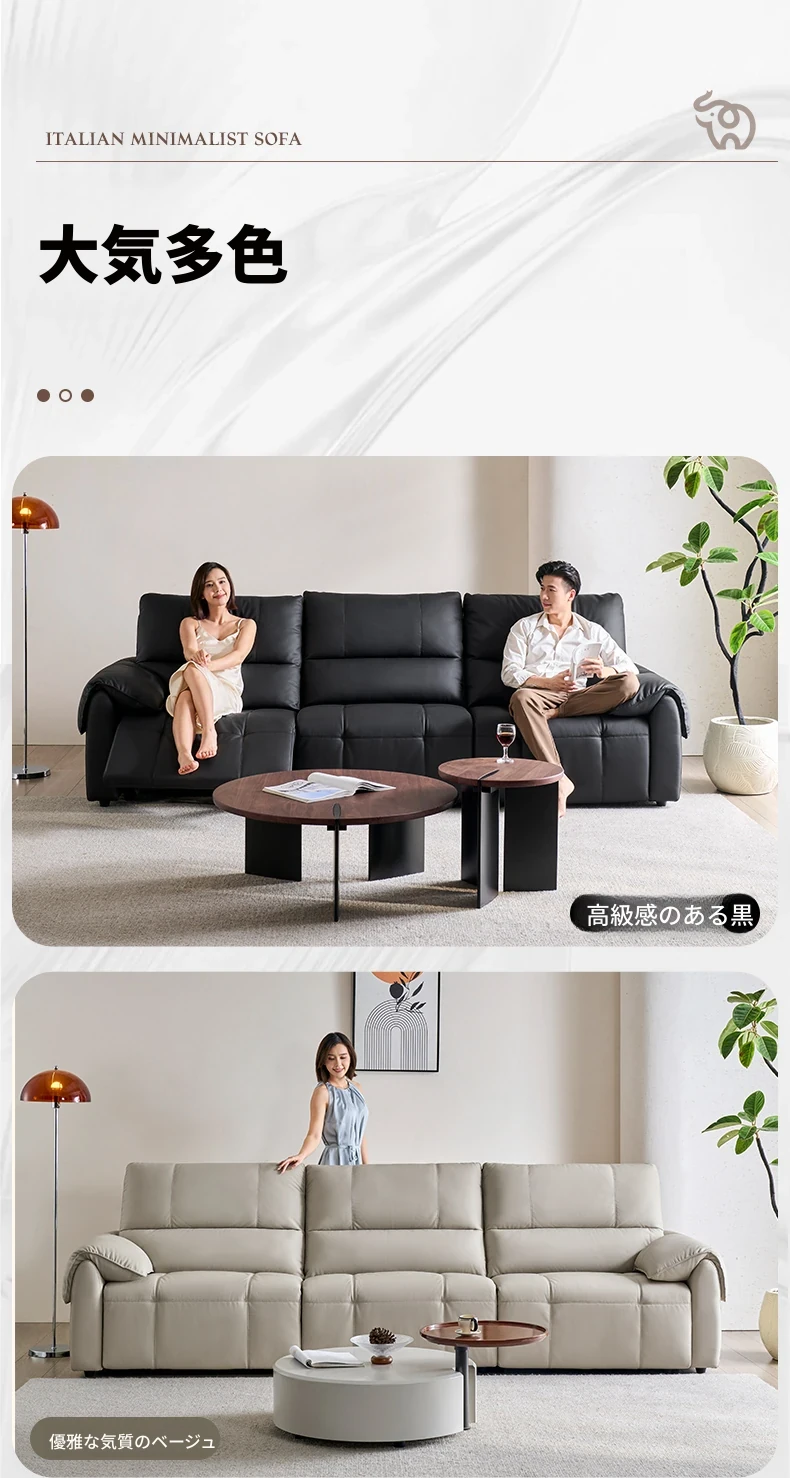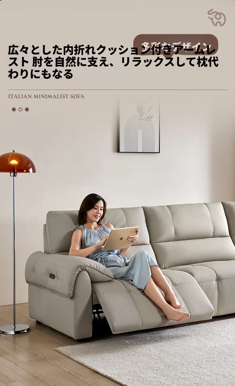 2025年新作!シンプルでスタイリッシュなアイボリー真皮ソファ、電動機能付き。リビングにぴったりの大人気エレファントイヤーデザイン、快適さと洗練された美しさを両立!6080モデル。