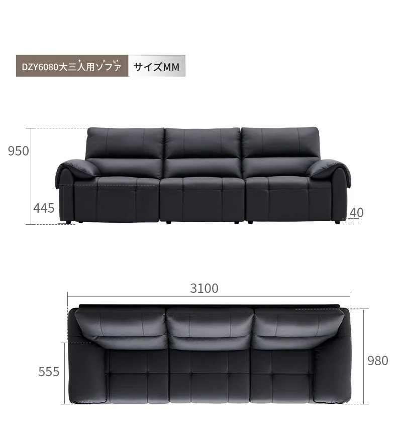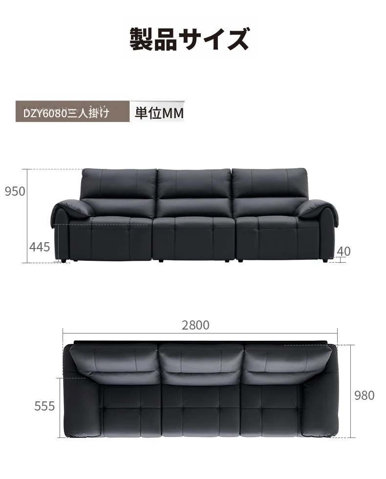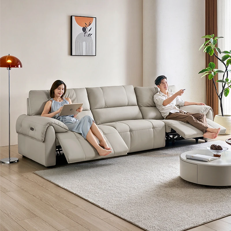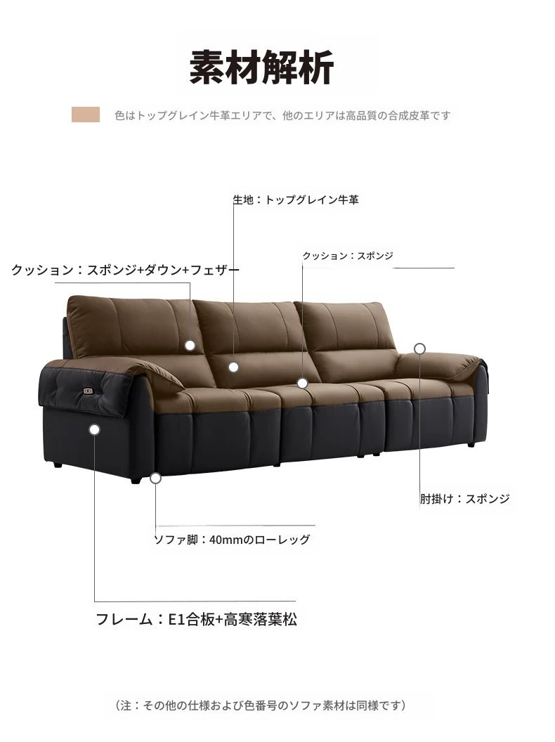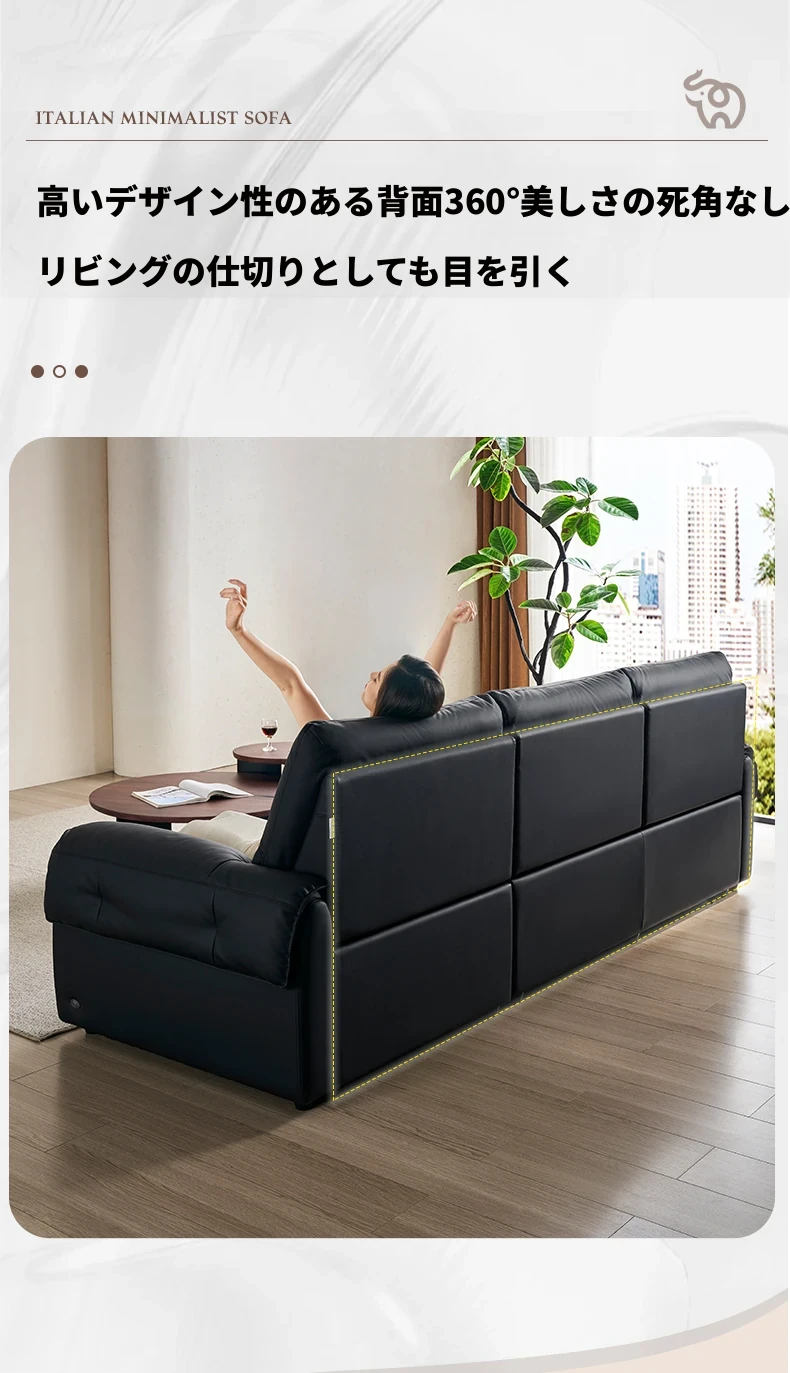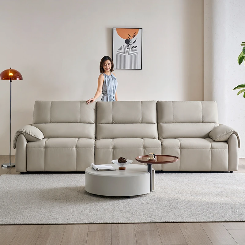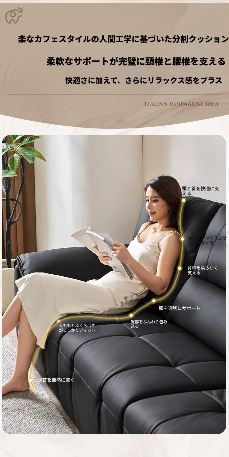 2025年新作!シンプルでスタイリッシュなアイボリー真皮ソファ、電動機能付き。リビングにぴったりの大人気エレファントイヤーデザイン、快適さと洗練された美しさを両立!6080モデル。