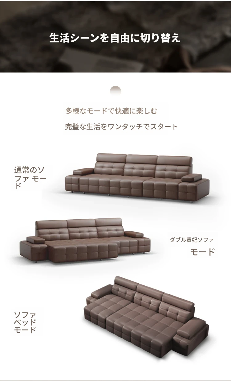 左右ソファ ベッド機能付き 本革ソファ トップグレードレザー イタリアンミニマリズム 直線デザイン 2025年新作6095で、洗練されたスタイルと快適さを両立!お部屋をおしゃれに演出します。