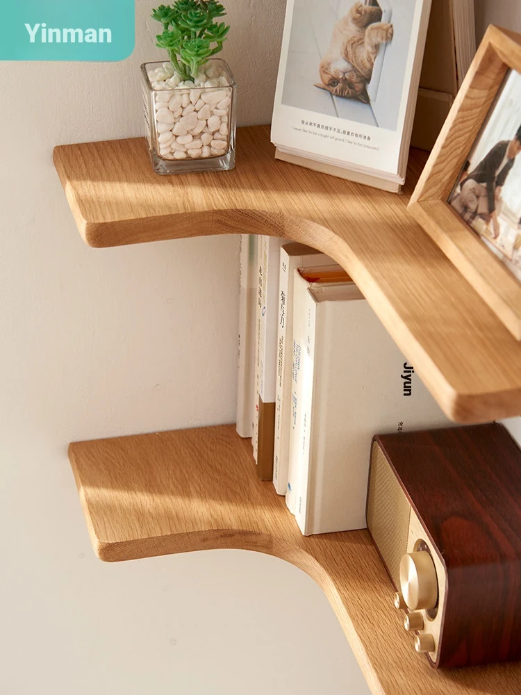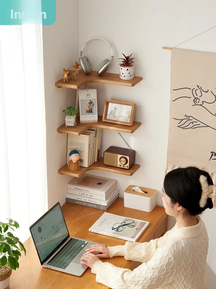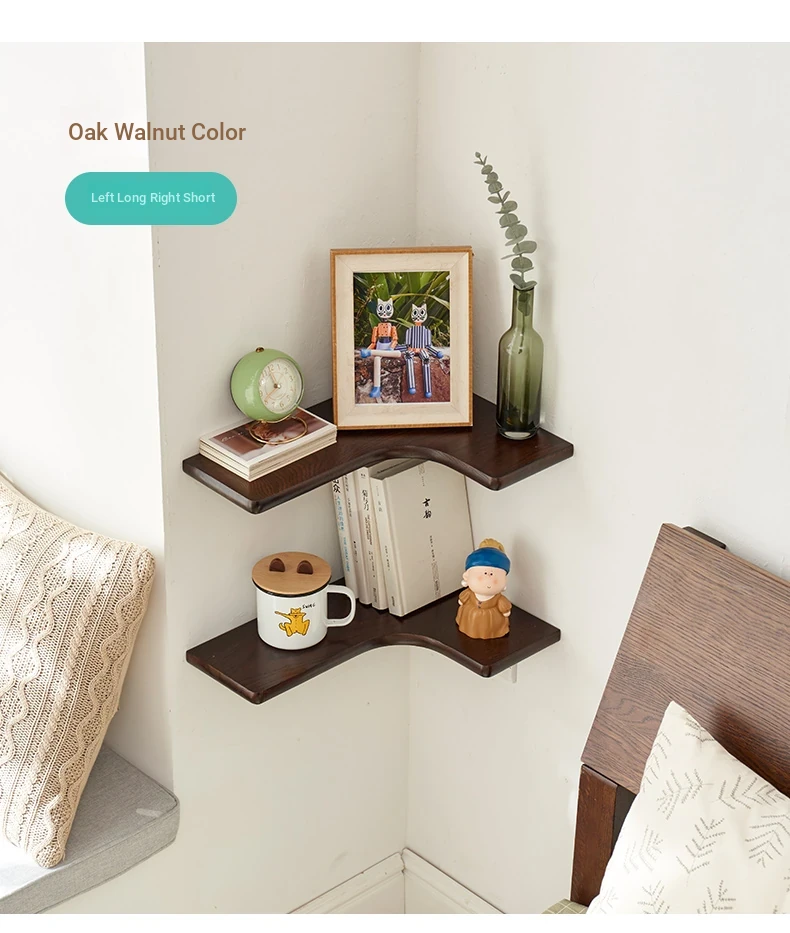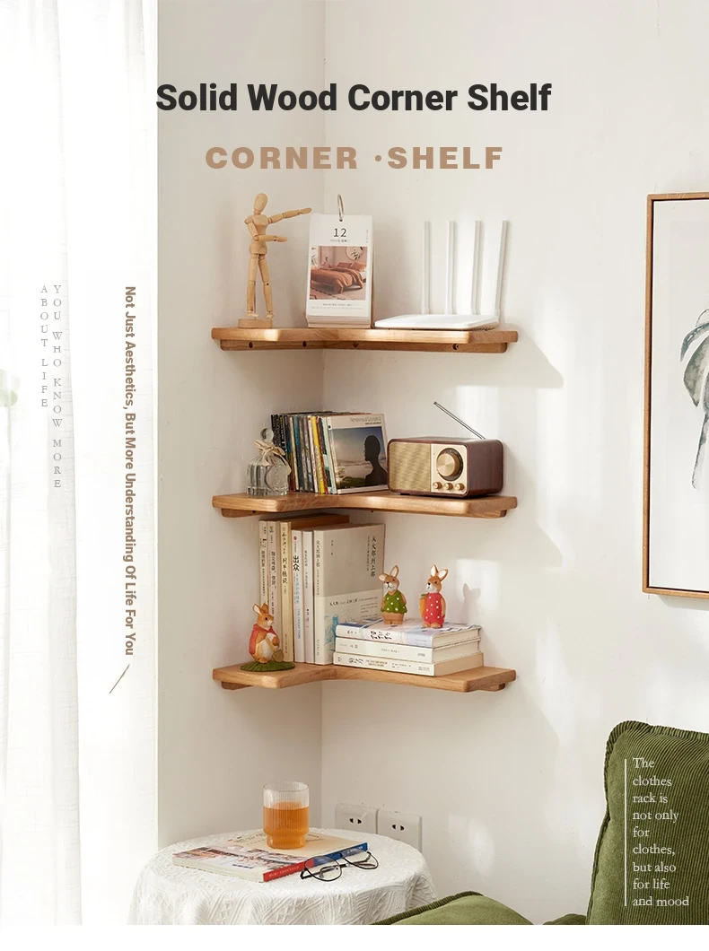 Inman Solid Wood Corner Shelf Triangular Rack - Oak Nordic Wall-Mounted No-Drill Storage Shelf for Living Room Corner - Stylish and Functional Storage Solution