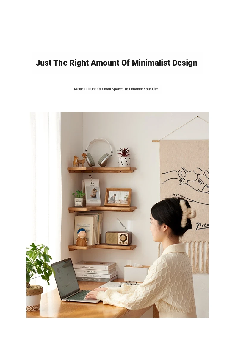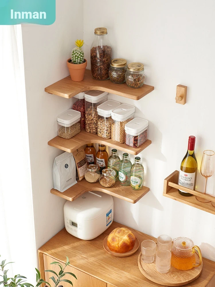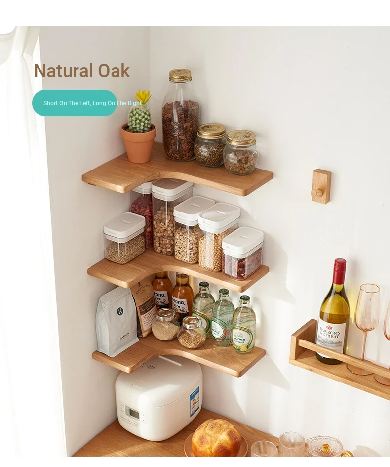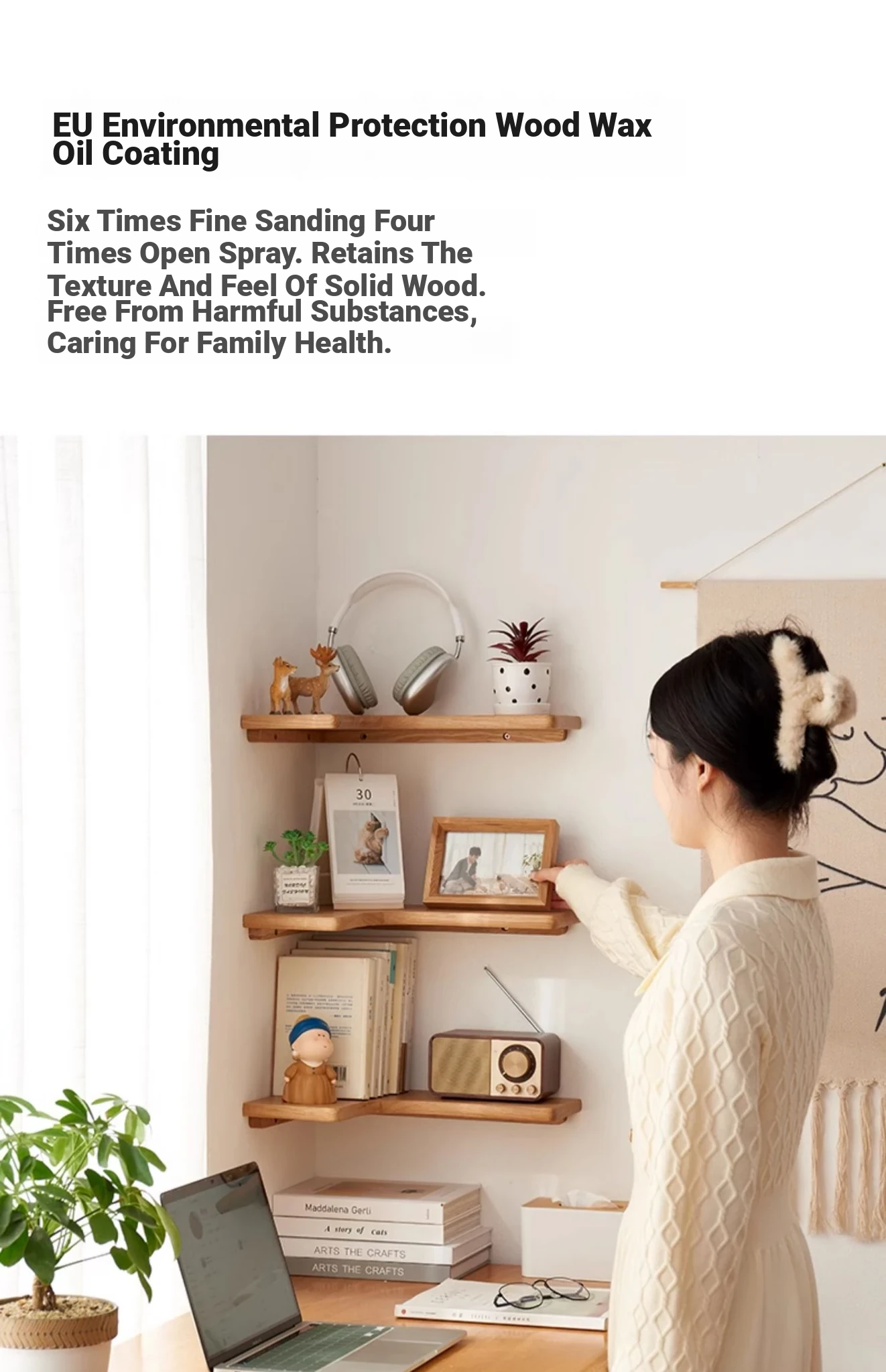 Inman Solid Wood Corner Shelf Triangular Rack - Oak Nordic Wall-Mounted No-Drill Storage Shelf for Living Room Corner - Stylish and Functional Storage Solution