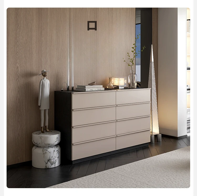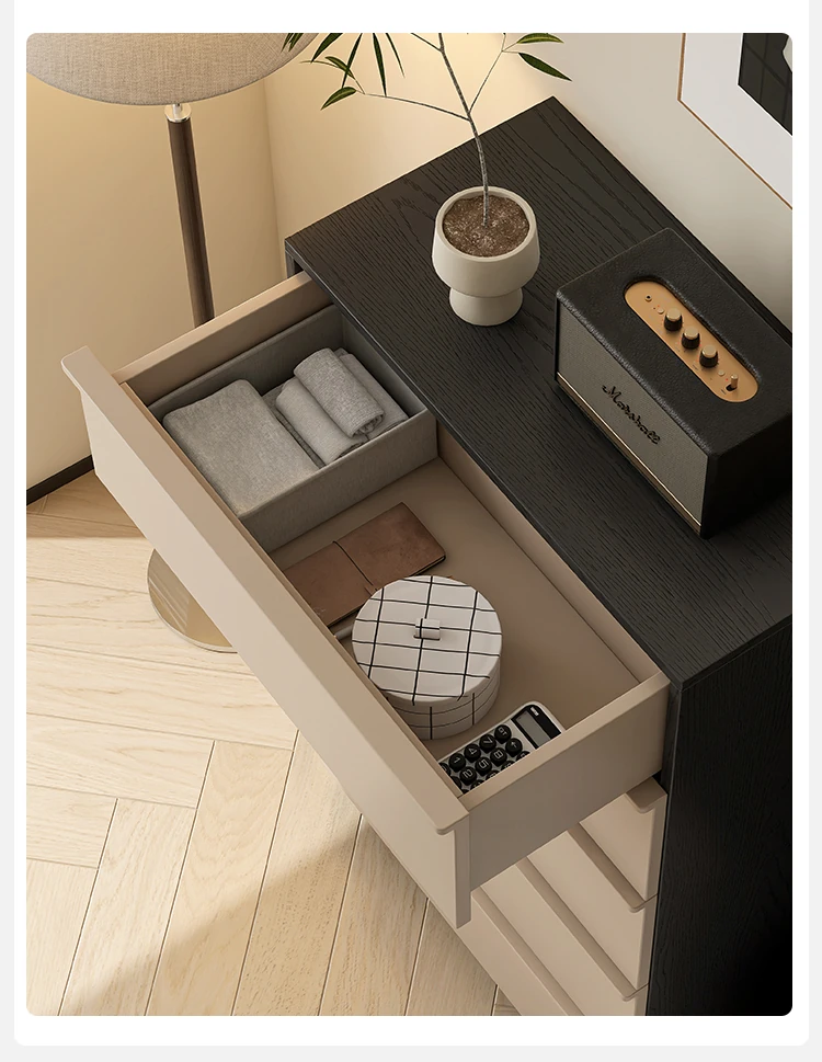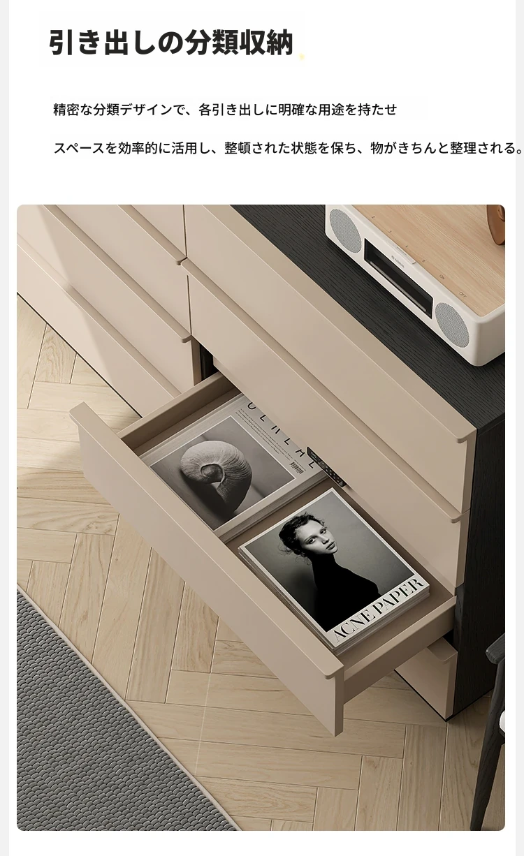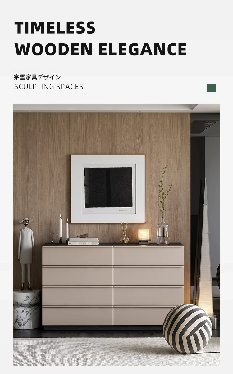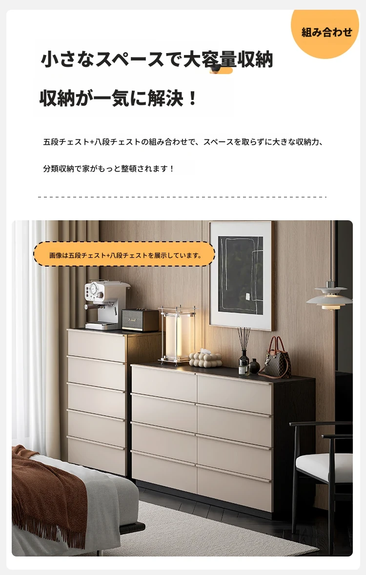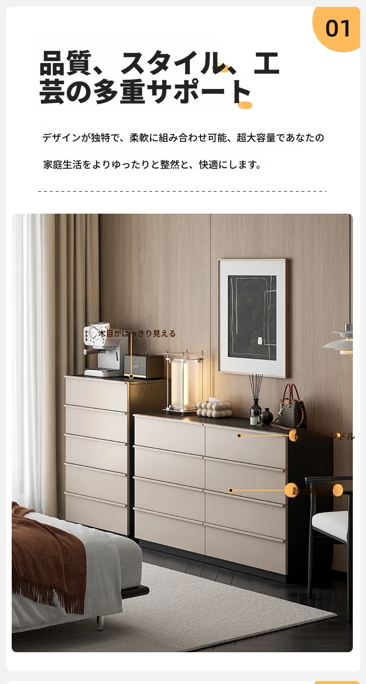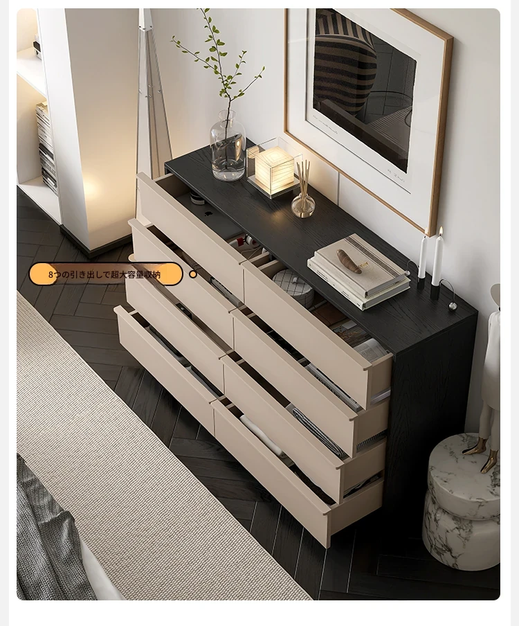 イタリアンミニマリズムの高級感!天然木製8段チェスト - 寝室のベッドサイド収納、リビングのサイドキャビネット、玄関収納にも最適!おしゃれで機能的な収納家具で、空間を美しく演出します。