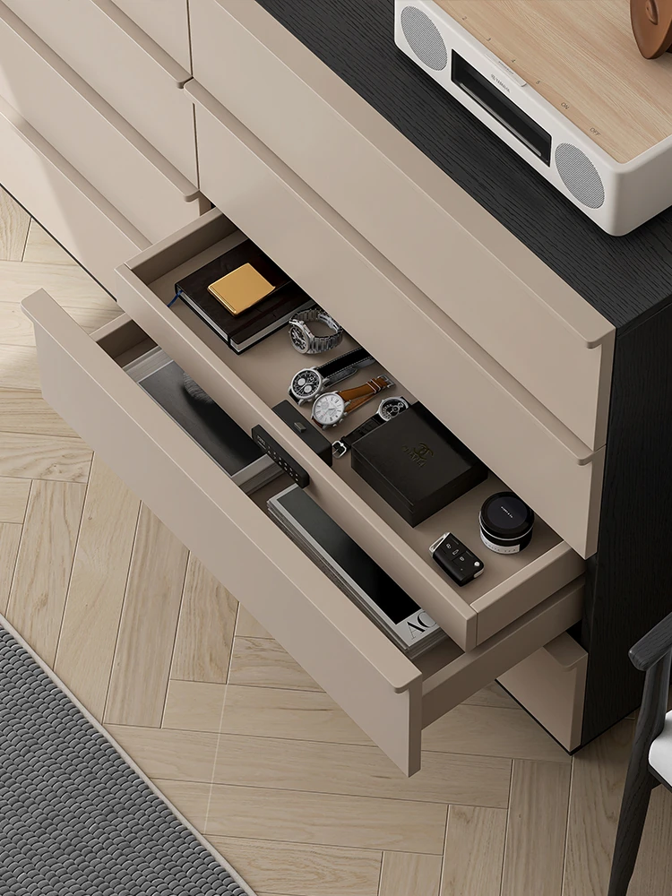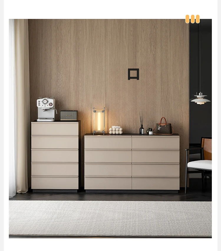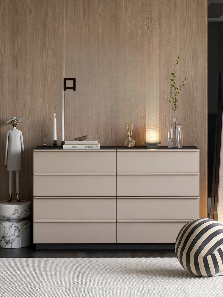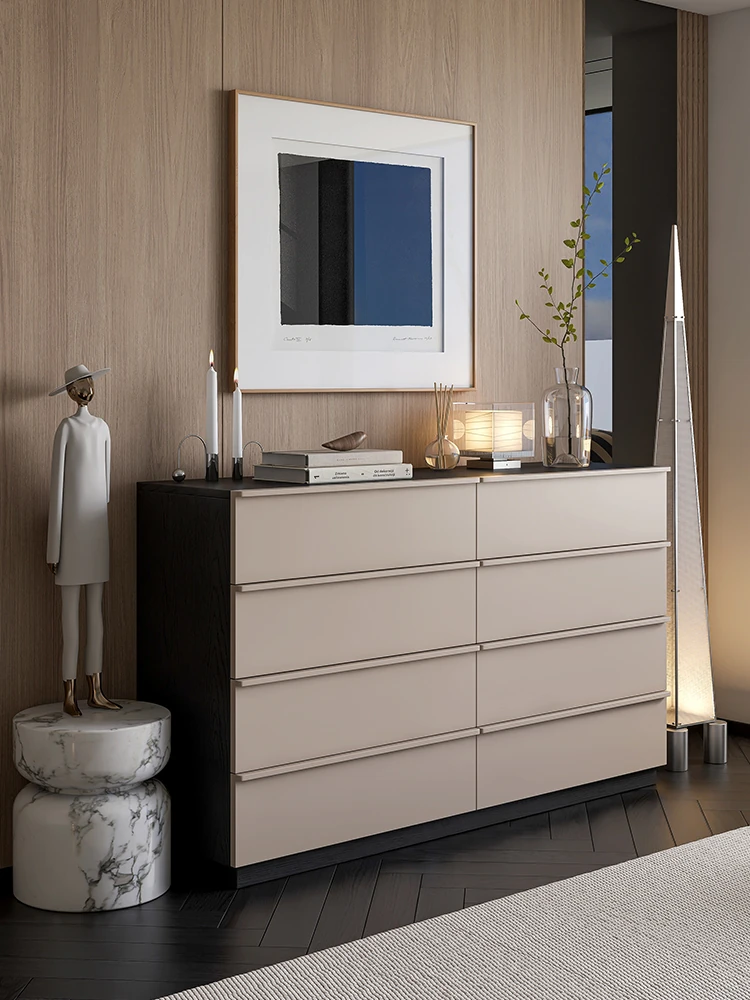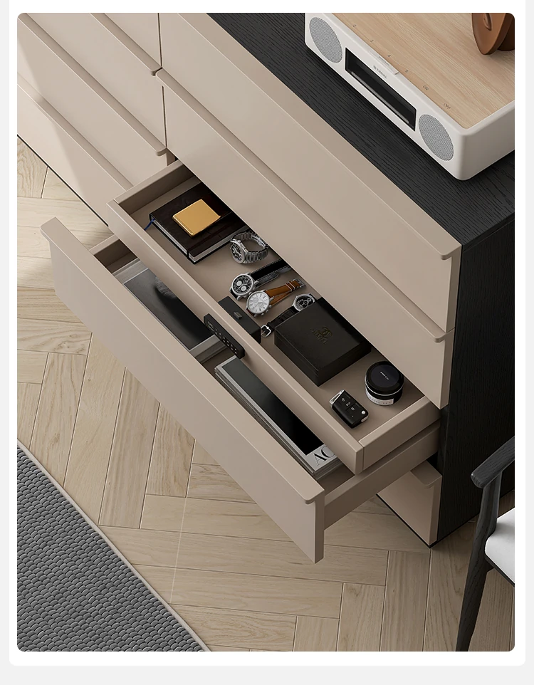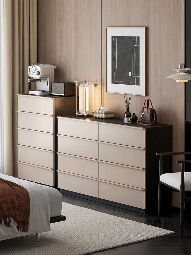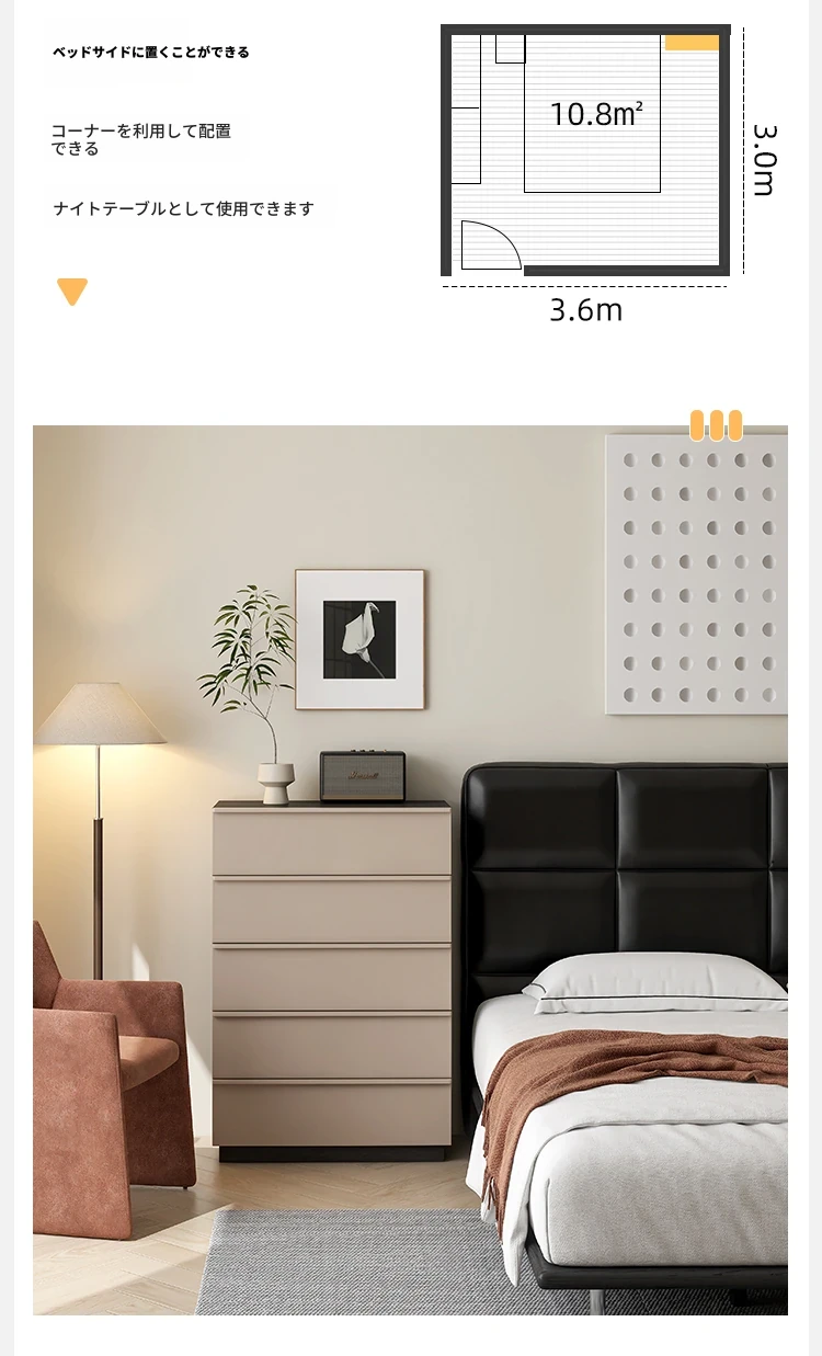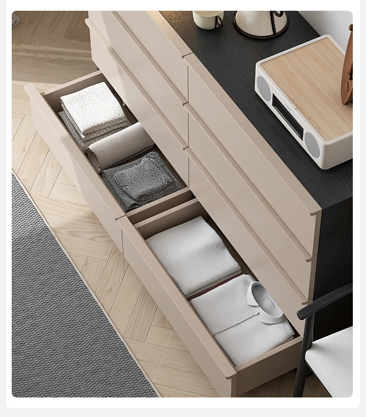 イタリアンミニマリズムの高級感!天然木製8段チェスト - 寝室のベッドサイド収納、リビングのサイドキャビネット、玄関収納にも最適!おしゃれで機能的な収納家具で、空間を美しく演出します。