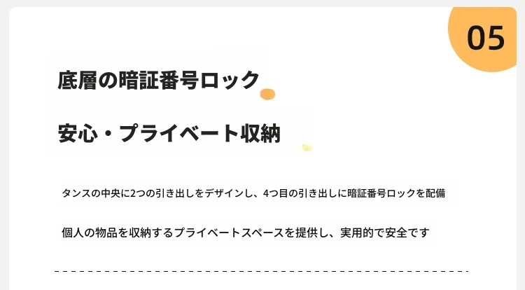 0.7メートル5段チェスト(暗証番号ロック付き引き出し)