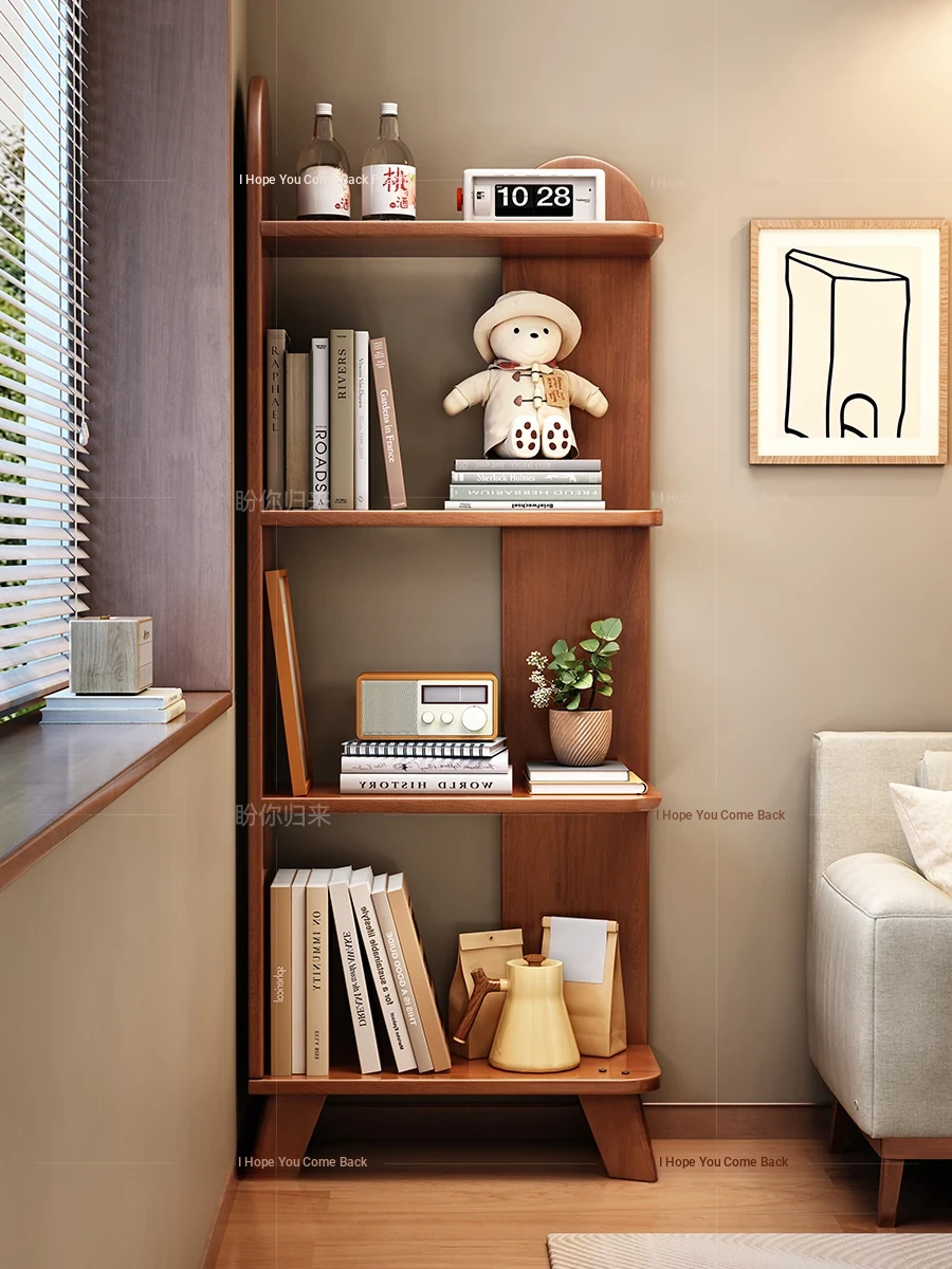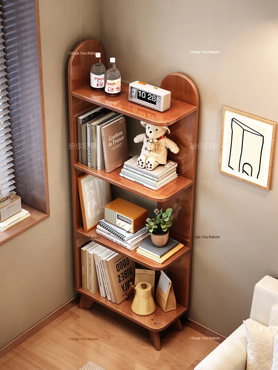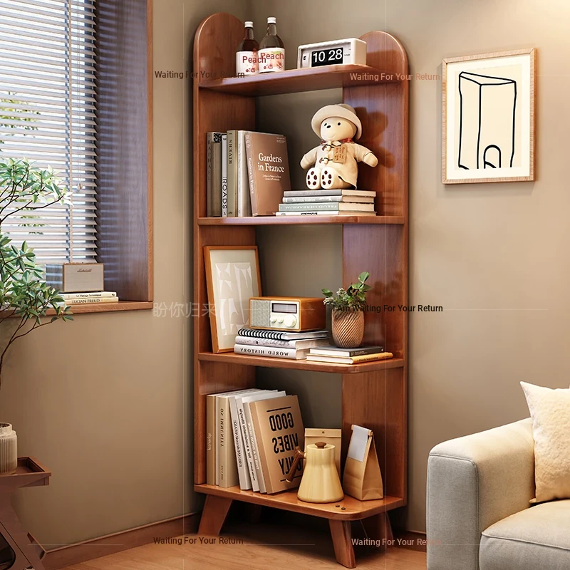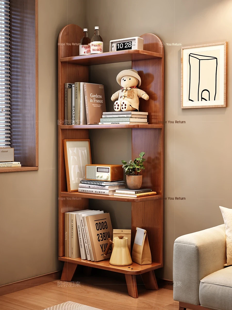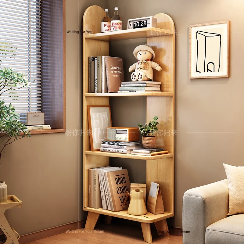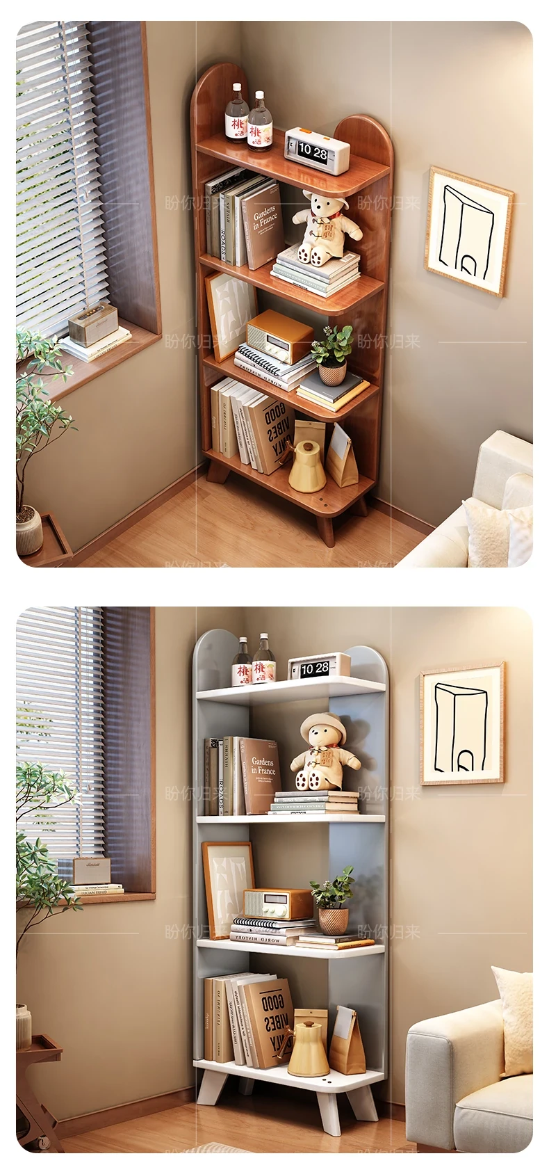 Solid Wood Corner Bookshelf for Kids - Easy Assembly Wall-Mounted Bookcase for Living Room, Perfect for Students, Space-Saving Floor Storage Unit