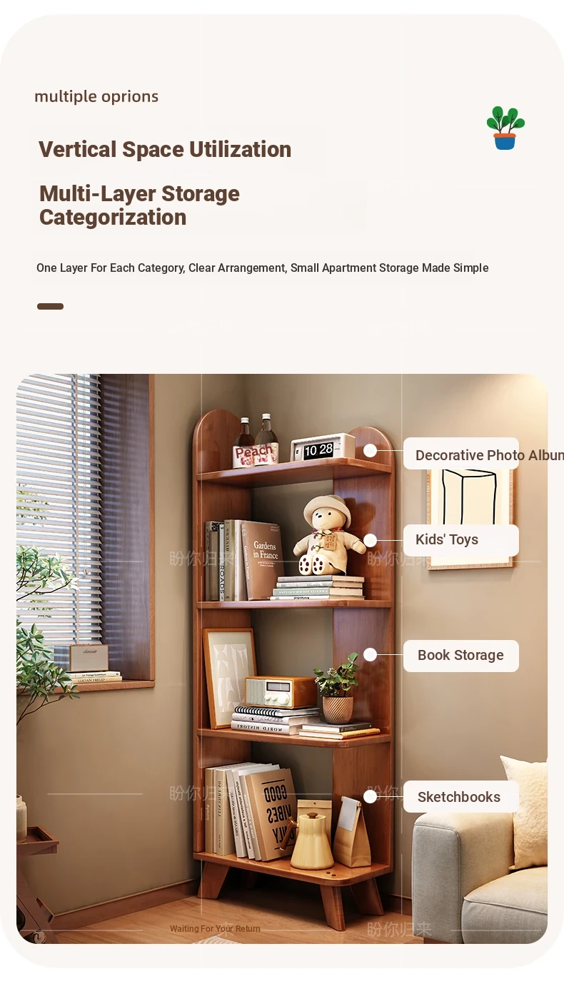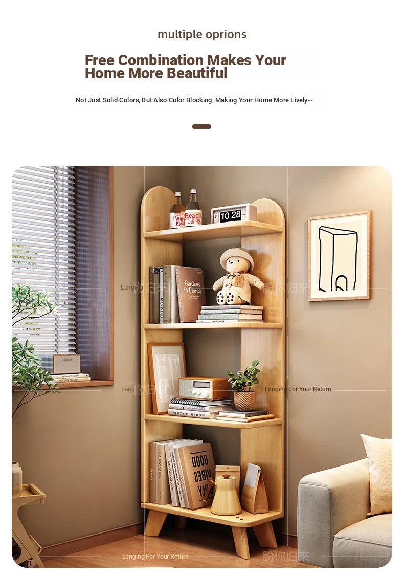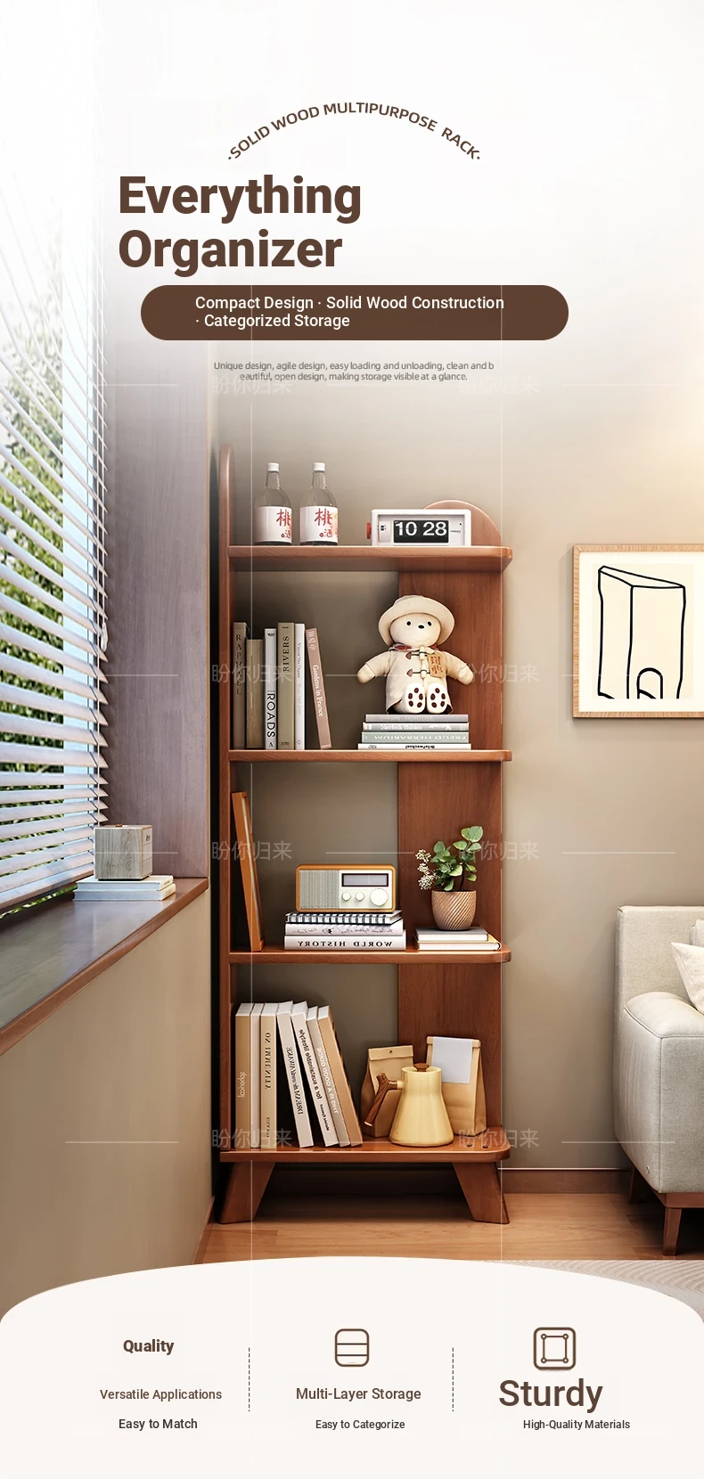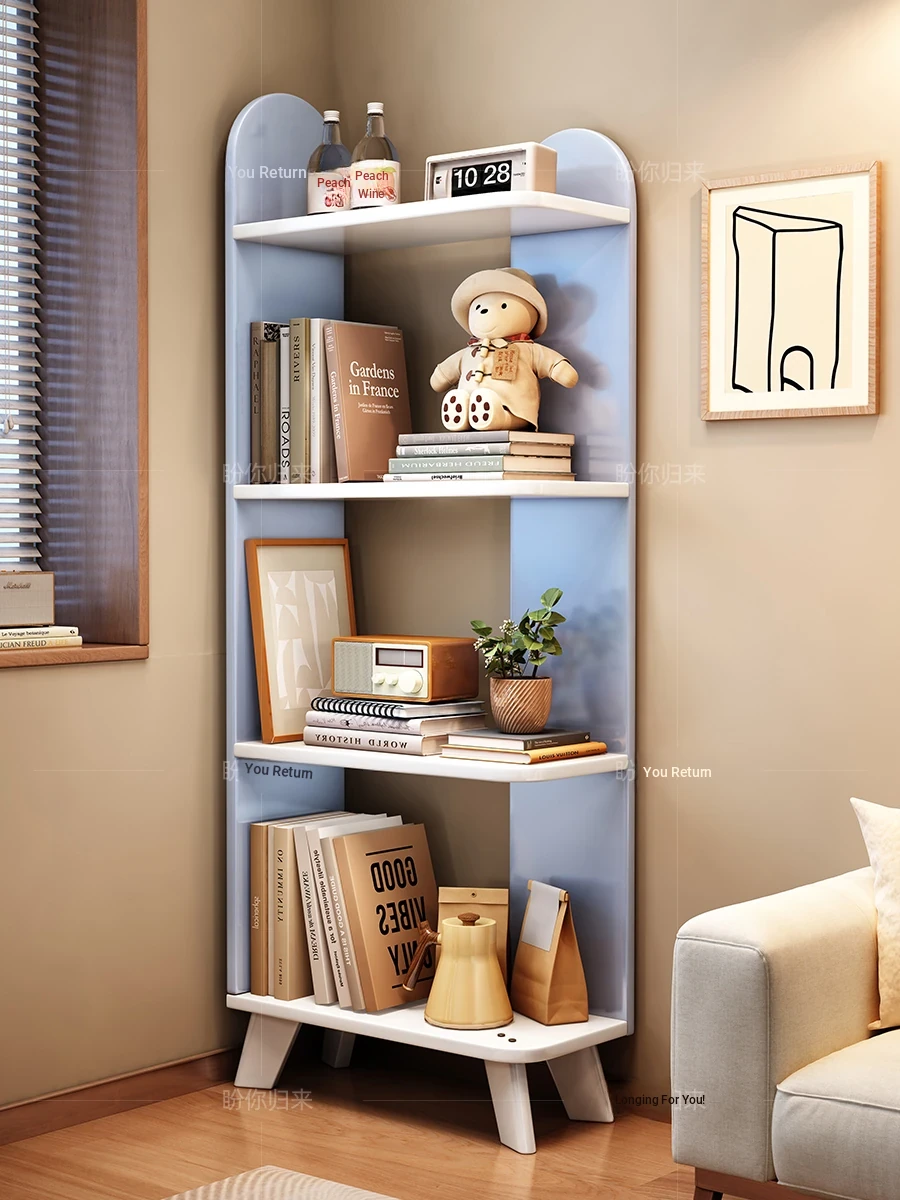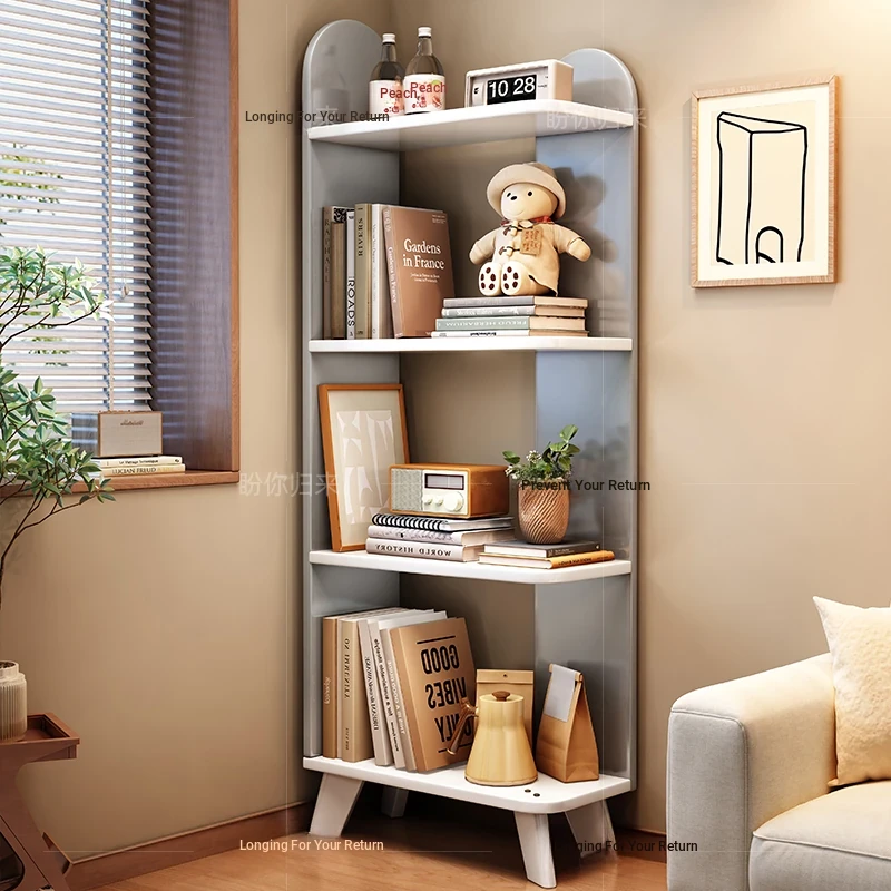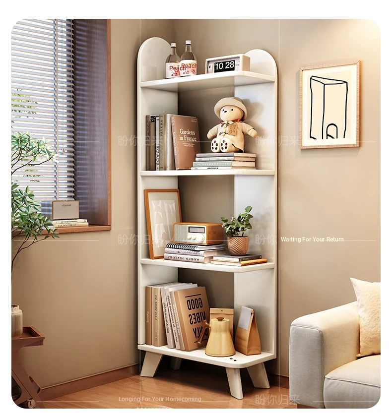 Solid Wood Corner Bookshelf for Kids - Easy Assembly Wall-Mounted Bookcase for Living Room, Perfect for Students, Space-Saving Floor Storage Unit