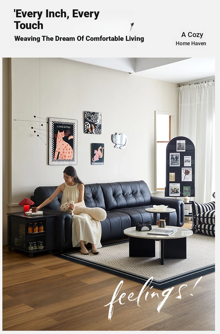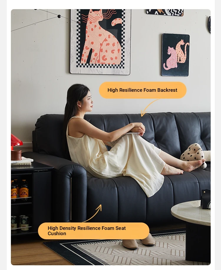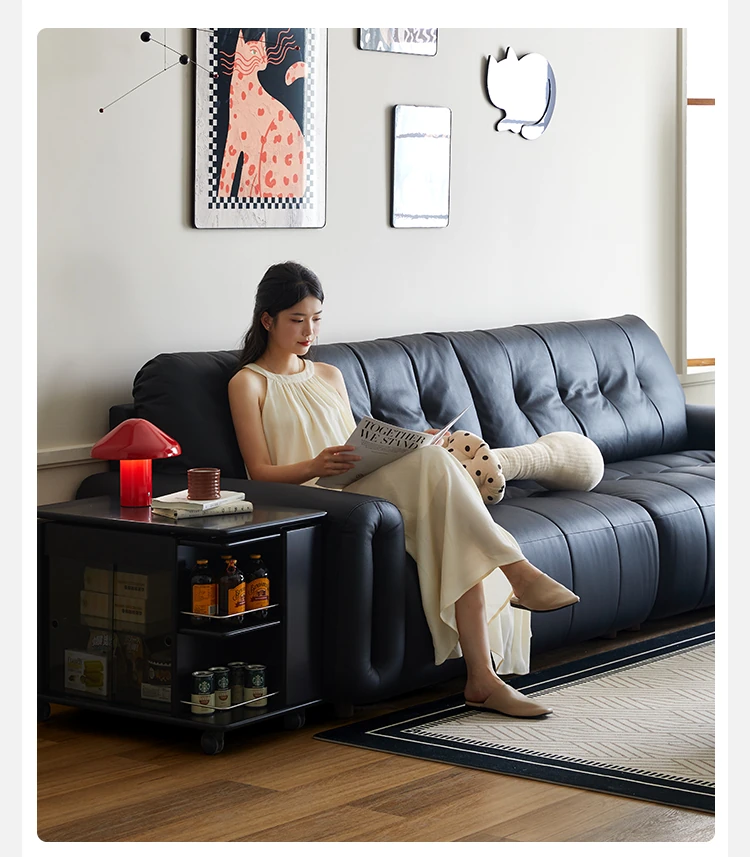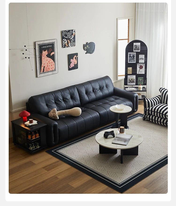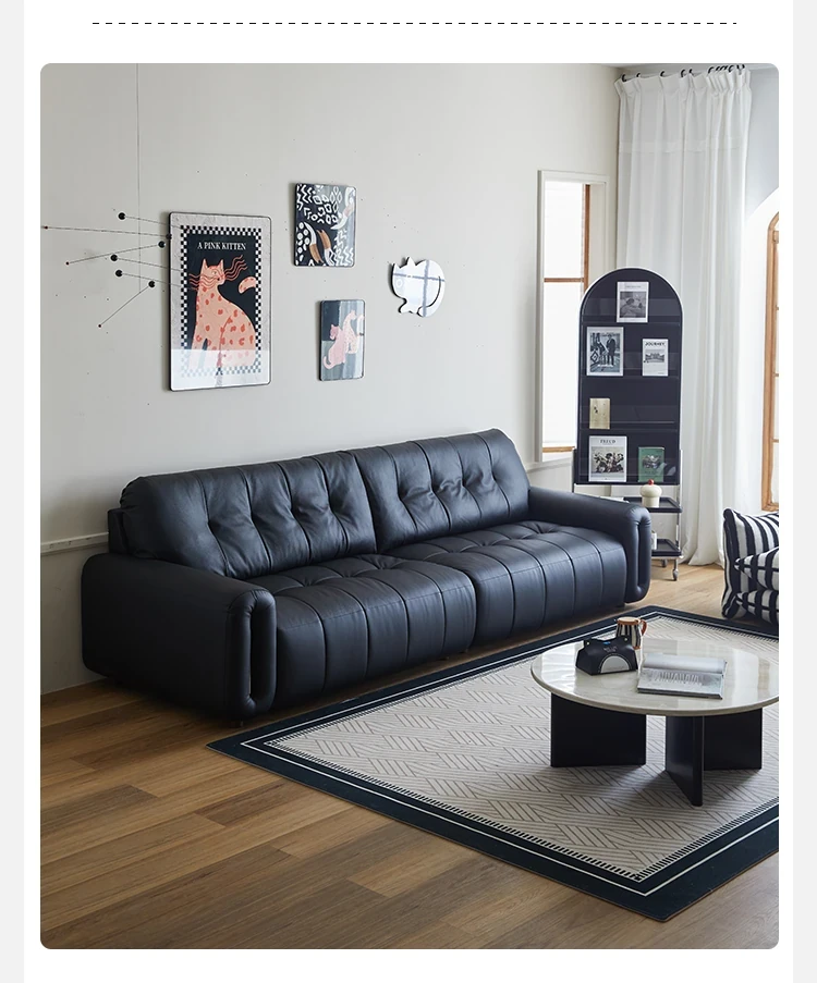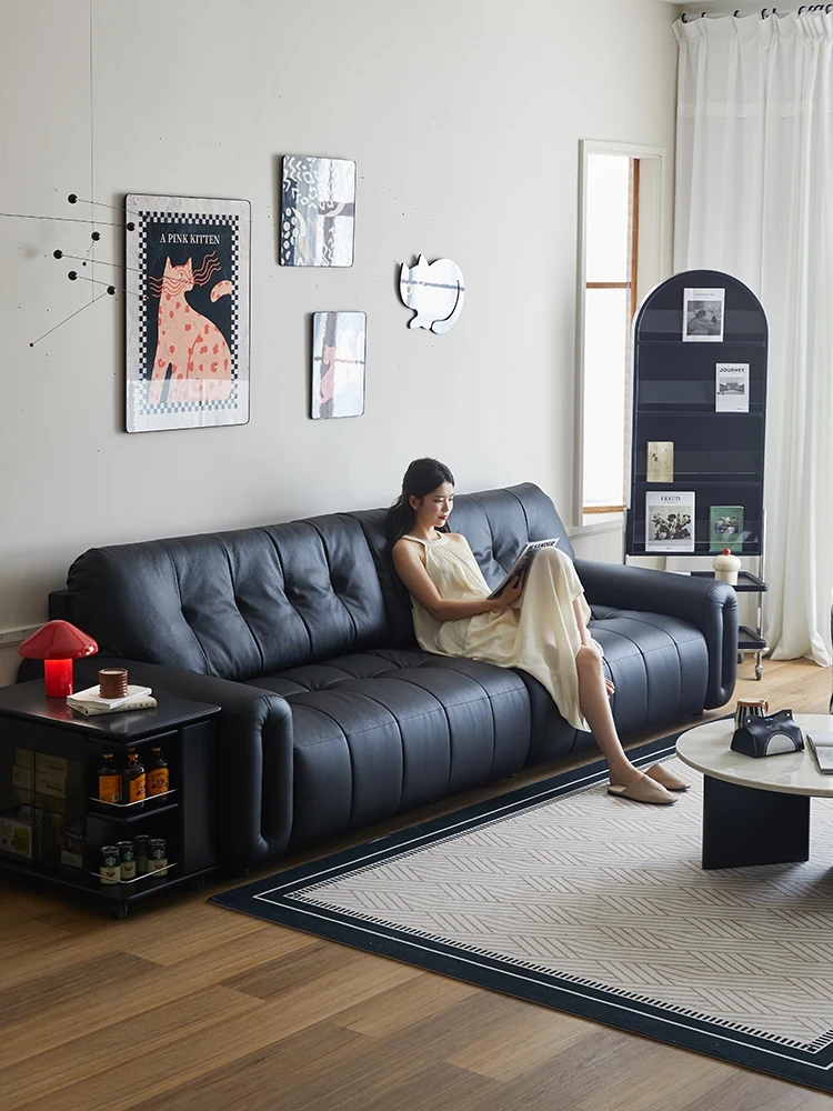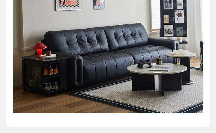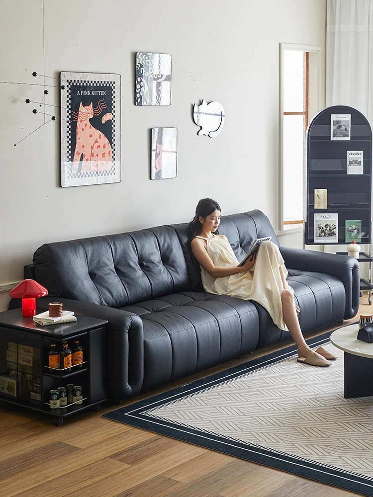 宗云イタリアンラグジュアリー本革ソファ 高級トップグレイン牛革使用 レトロスタイル 黒の大きな牛革ソファで、居心地の良いリビング空間を演出!