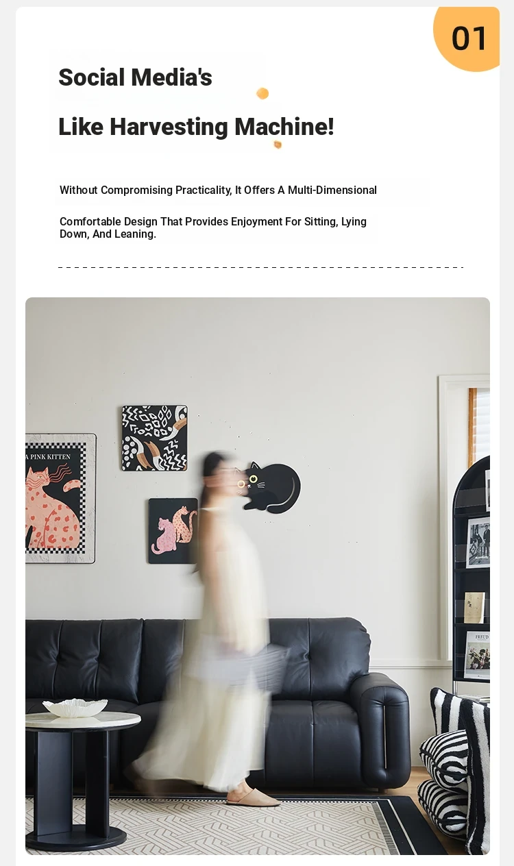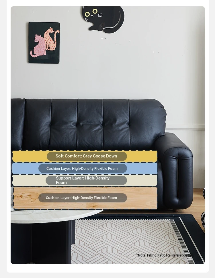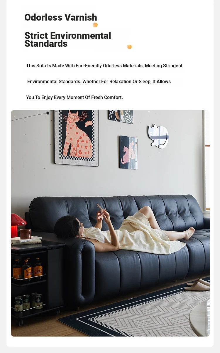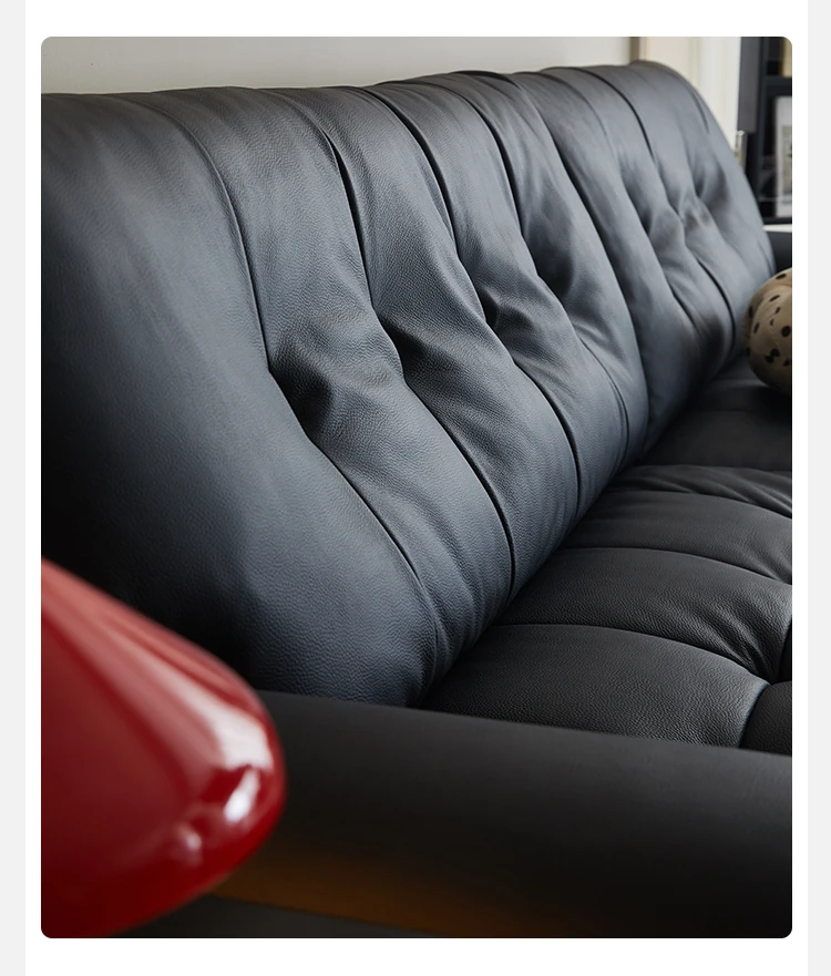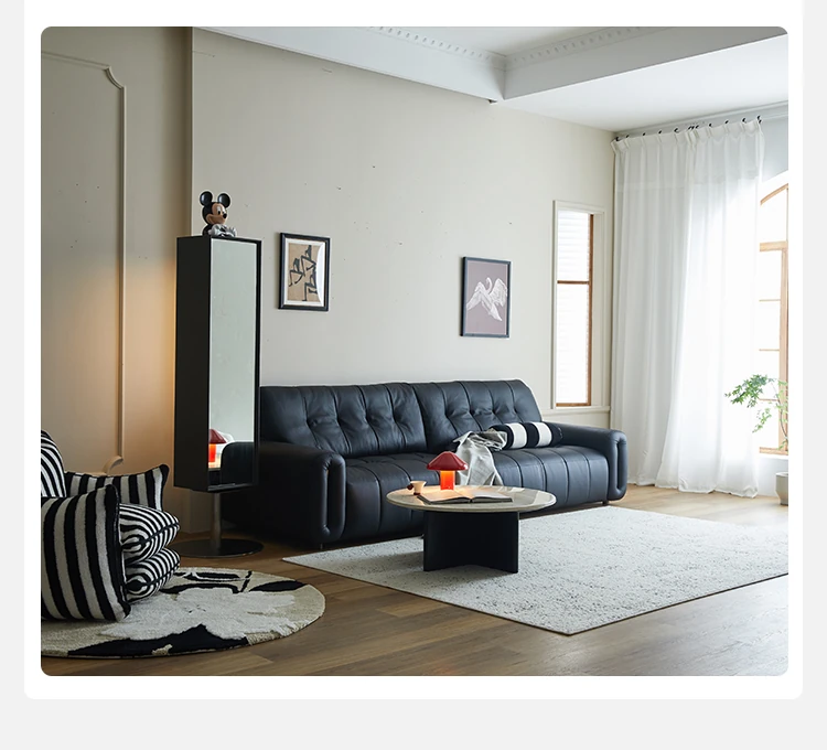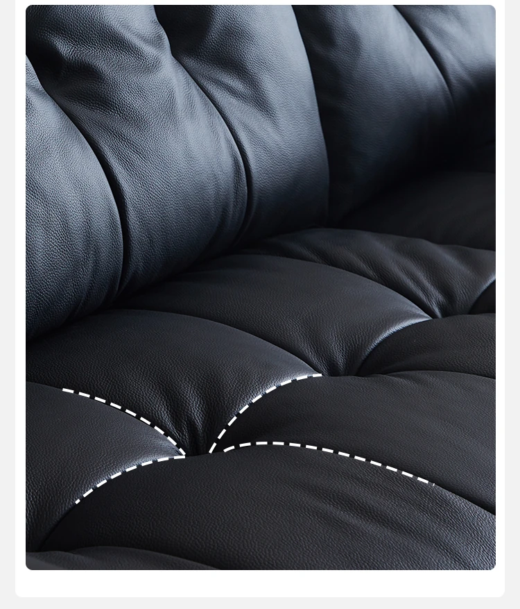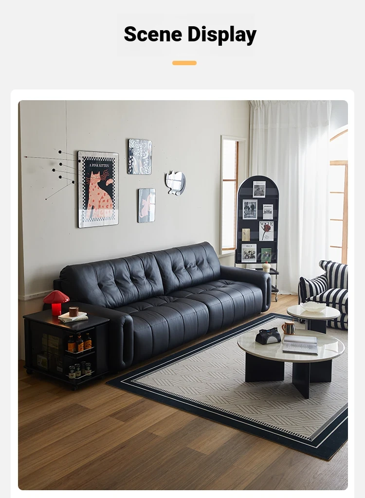 宗云イタリアンラグジュアリー本革ソファ 高級トップグレイン牛革使用 レトロスタイル 黒の大きな牛革ソファで、居心地の良いリビング空間を演出!
