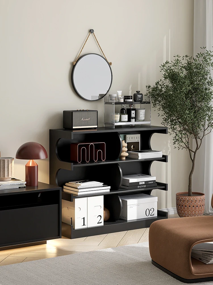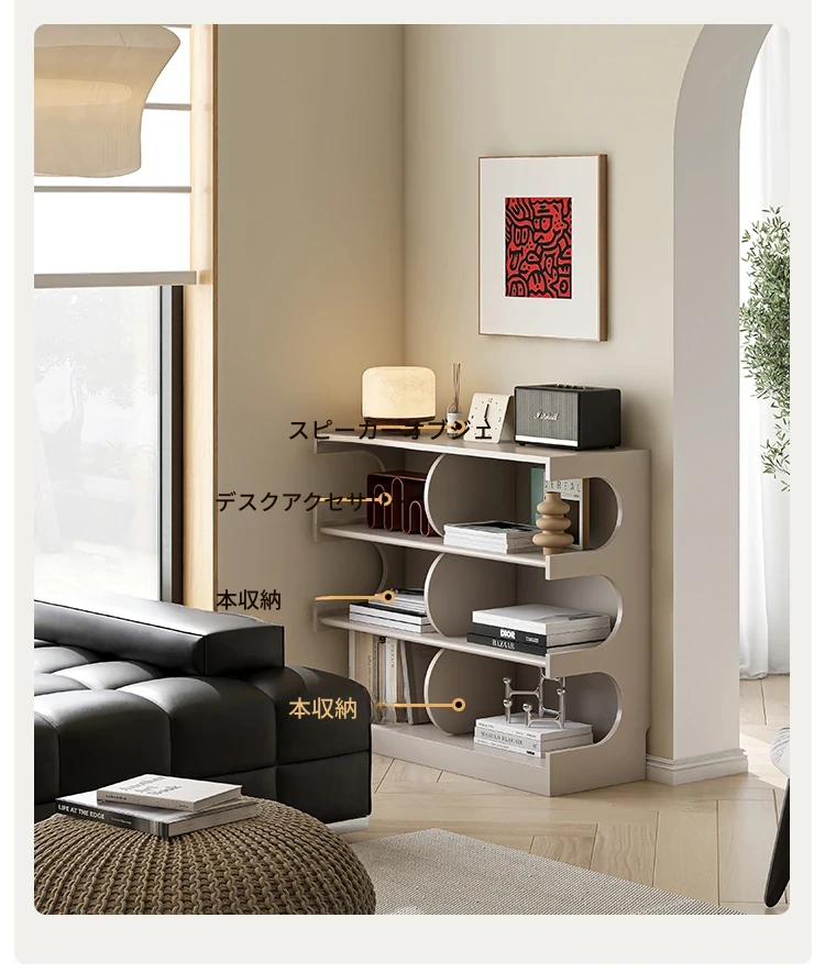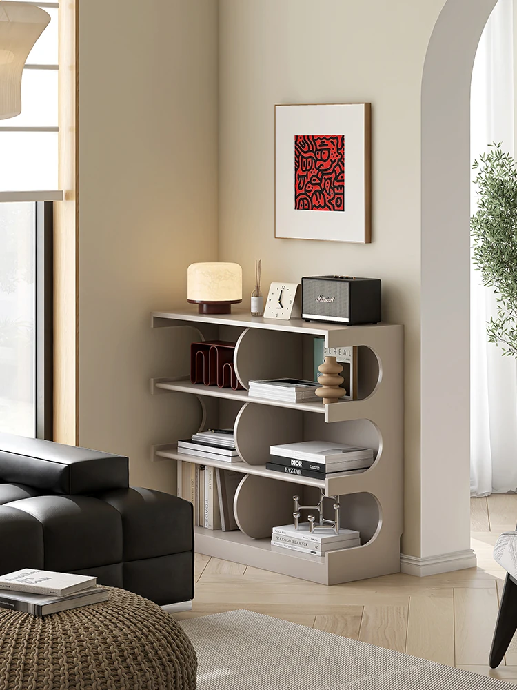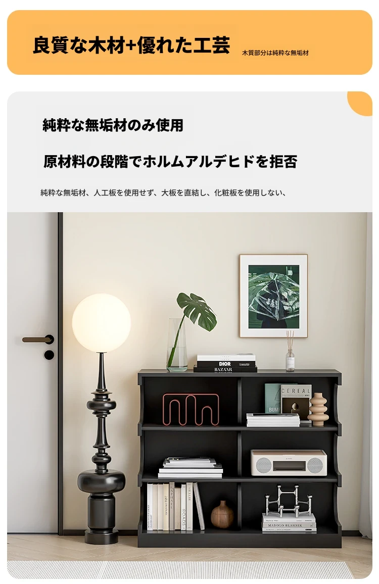 宗云シンプル多層収納ラック|リビングにぴったりな小型フロア本棚|天然木製のディスプレイキャビネット|ソファサイドに最適な収納ソリューション