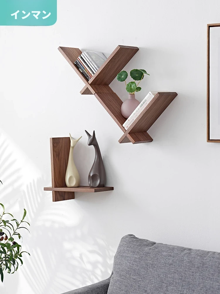 インマン 無垢材の壁掛け棚 オーク製 寝室の装飾に最適 クロスデザインのリビングルーム用テレビ壁掛けシェルフ