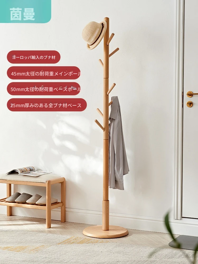 インマンの無垢材コートハンガー - シンプルでスタイリッシュなデザイン、太めのブナ材を使用した頑丈なスタンド式衣類ラック。寝室やリビングに最適、使いやすさと美しさを兼ね備えたアイテムです!