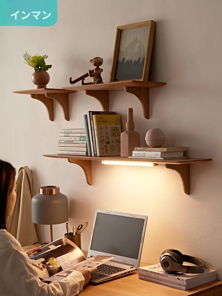 インマン無垢材の本棚 オーク製 ウォールシェルフ 北欧風 壁掛け花棚 収納間仕切りシェルフ 一字型シェルフ おしゃれで機能的な収納スペースを実現!お部屋をスタイリッシュに演出します。