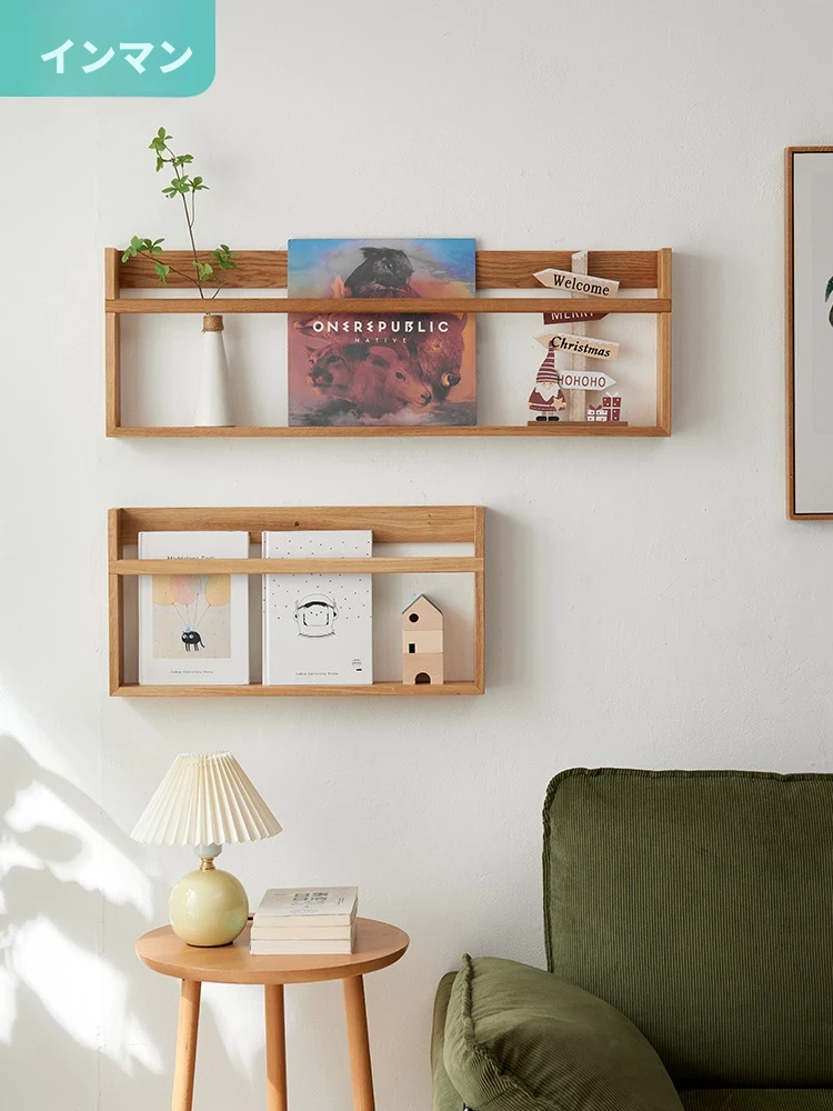 インマン無垢材絵本ラック|オーク製ウォールシェルフ|壁掛け本棚・新聞・雑誌収納ラック|おしゃれなインテリアでスッキリ整理整頓!あなたの空間を美しく演出します!