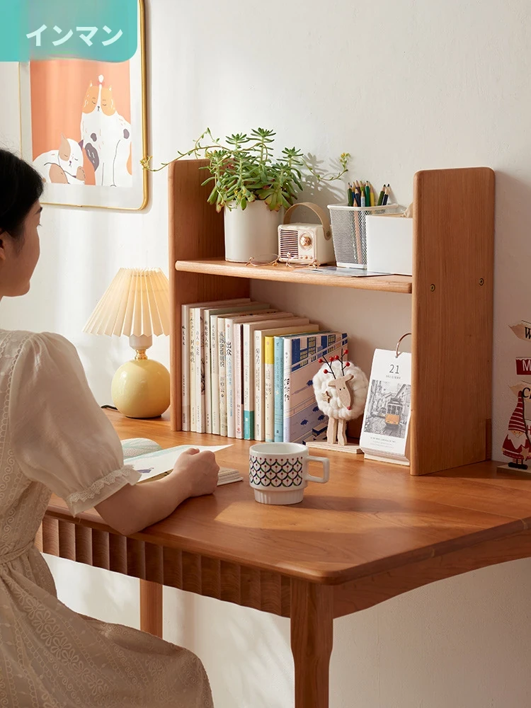 インマン 高品質無垢材デスクトップ書棚 オフィスデスク用ファイル収納ラック 多層式収納シェルフ チェリーロ木製 スタイリッシュで実用的!整理整頓をサポートし、作業効率をアップ!