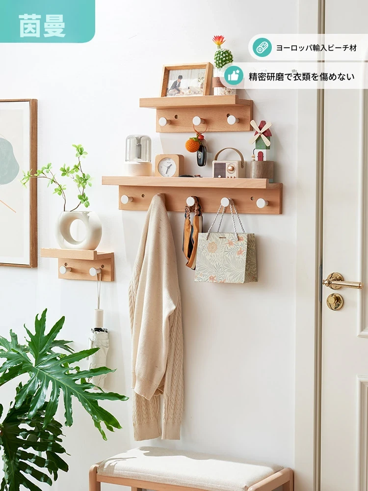 天然木製の壁掛け衣類収納ラック - 寝室や子供部屋に最適!入室時の玄関にぴったりな多機能コートラックで、スッキリ整頓。家族全員の衣服を美しく収納し、スタイリッシュな空間を演出します。