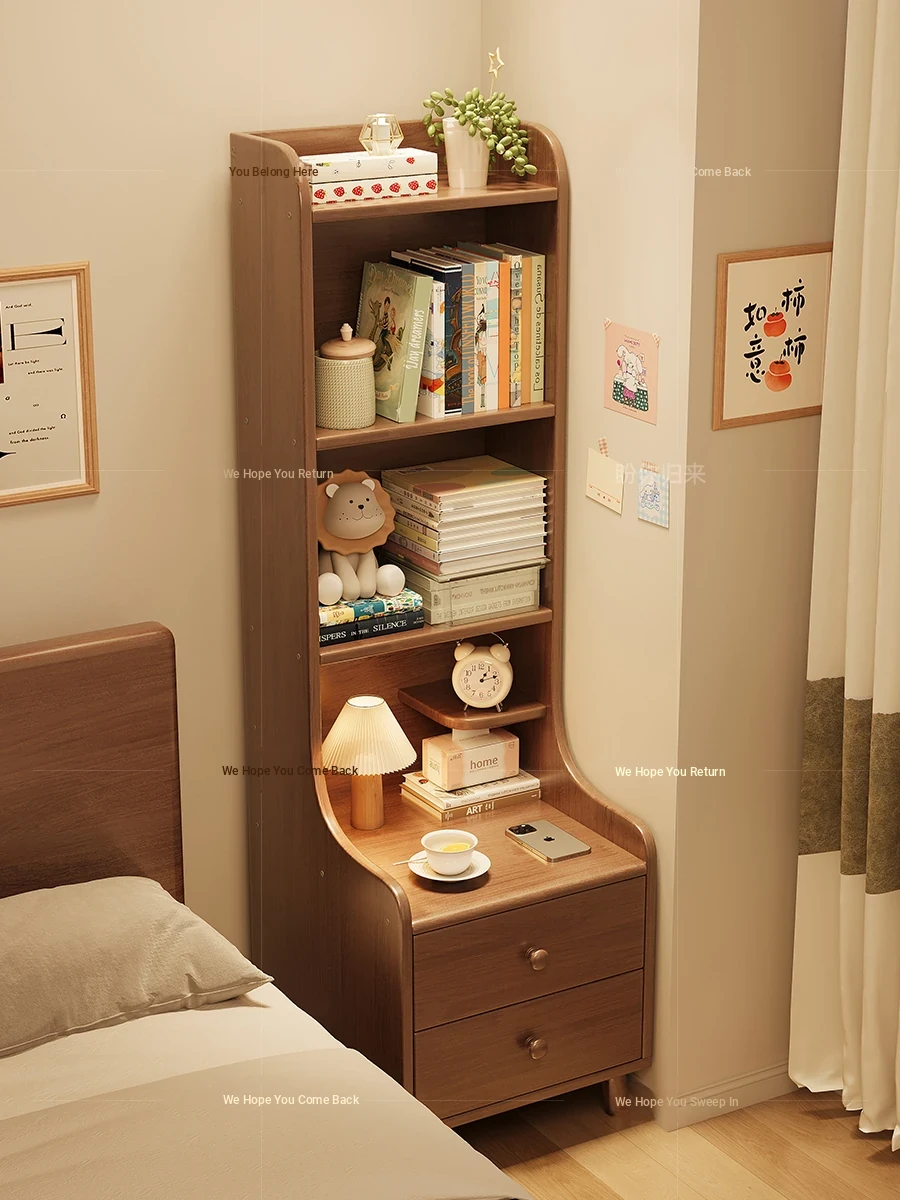 Solid Wood Nightstand with Bookshelf - Multifunctional Drawer Storage Cabinet for Living Room and Bedroom, Compact Bedside Organizer with Ample Storage Space