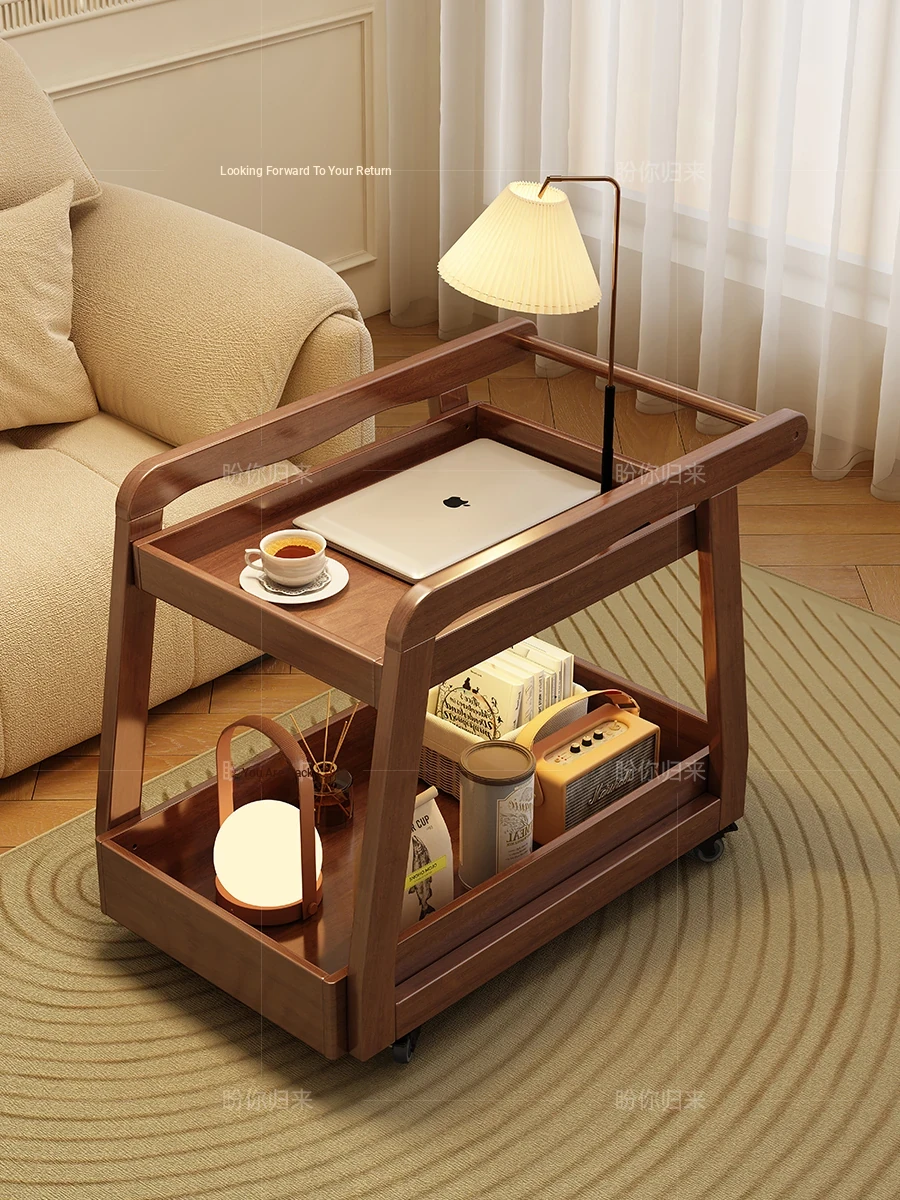 Versatile Solid Wood Side Table with Wheels - Movable Coffee Table for Living Room, Bedside Cart, Ideal for Sofa Side or Beverage Station